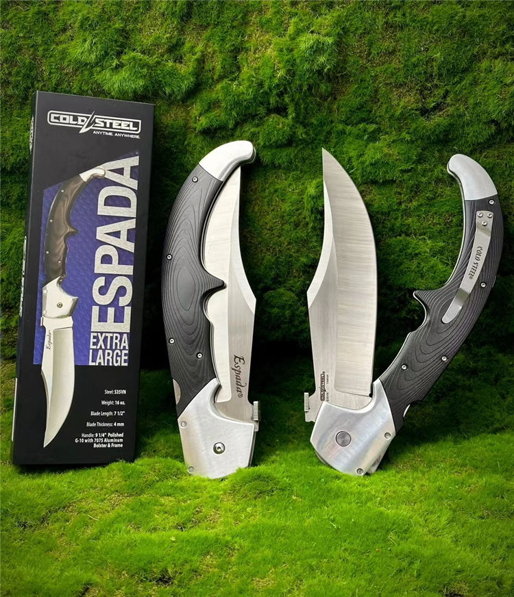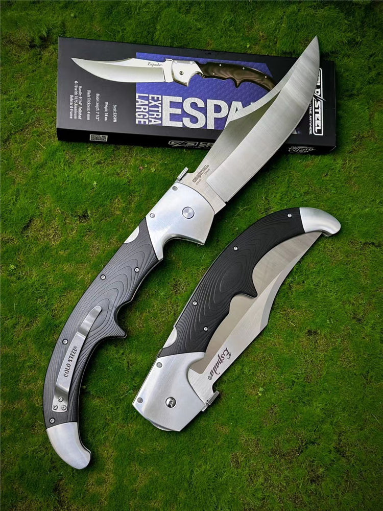 冷钢埃斯巴达超大型折刀 总长:42.5cm 刃长:19.1cm 柄长:23.5cm 刃厚:4mm 材质:CPM-S35VN钢 重量:453.6克
