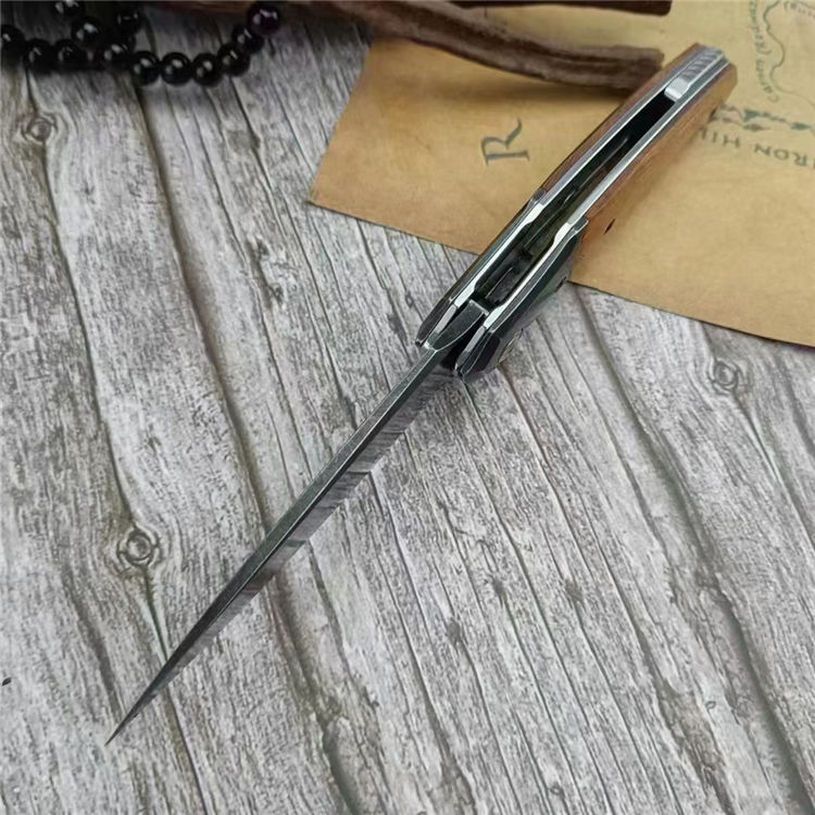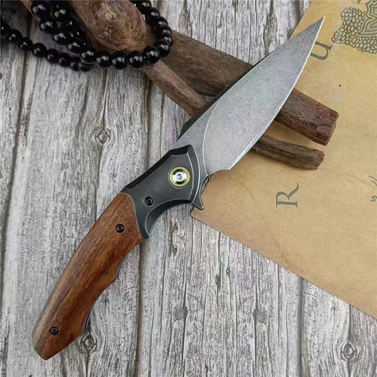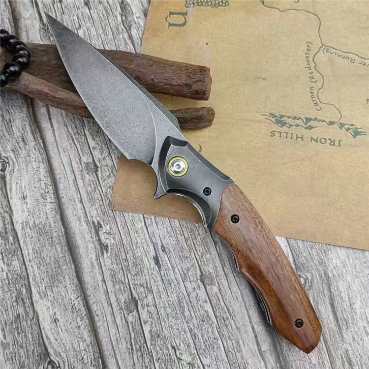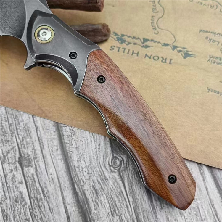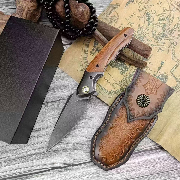 乌兹凤凰折刀 总长:21.3cm 刃长:8.5cm 刃宽:3.5cm 刃厚:3.4mm 柄材:砂铁木 刃材:乌兹钢 柄长:12.6cm 柄宽:2.5cm 柄厚:16.5mm 重量:164G 刀鞘:PU皮鞘