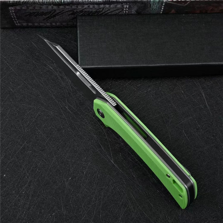 暴龙折刀 总长:208mm 刃长:90mm 柄长:115mm 刃厚:4mm 刃宽:32mm 材质:14C28N 硬度:59-60HRC 表面:石洗 柄材:亚麻或G10 系统:滚珠轴承 净重:138-142克 包装:黑色礼盒