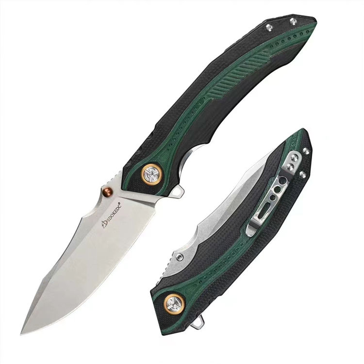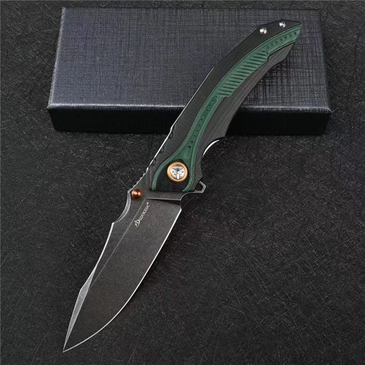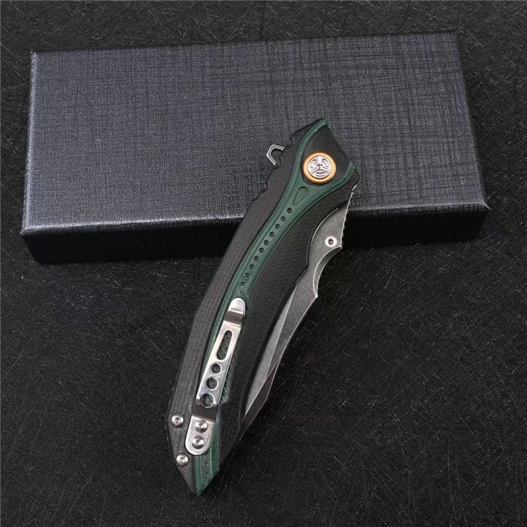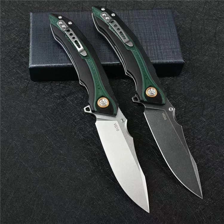 破甲VG10钢重型折刀 全长:22.3cm 刃长:9.5cm 柄长:13.1cm 刃厚:0.35cm 刃宽:3.0cm 刀重:176g 毛重:245g 钢材:VG10钢 柄材:黑色G10镶嵌色G10 硬度:60-61HRC 表面:石洗 包装:礼盒