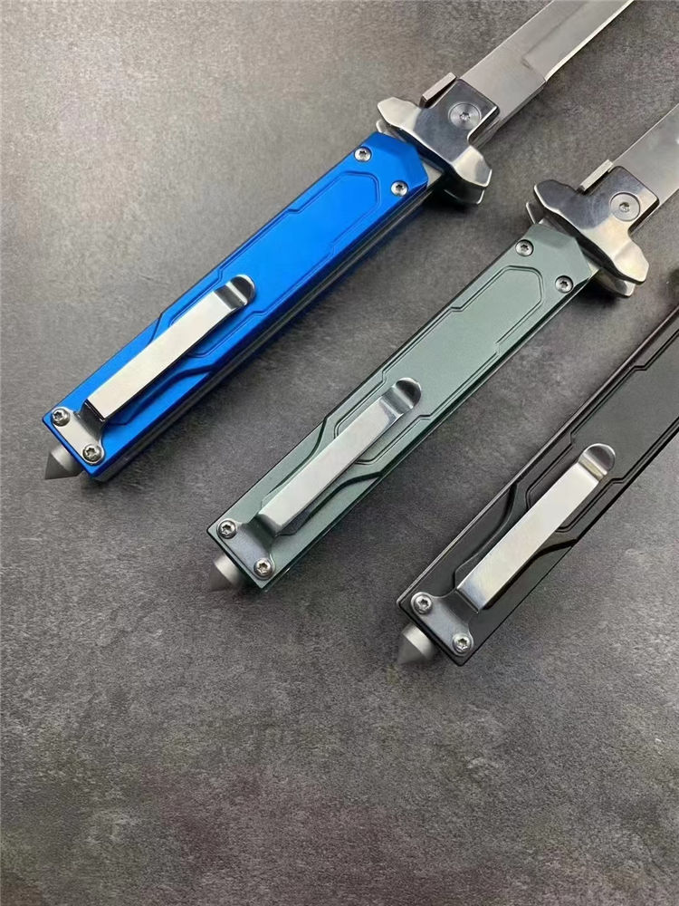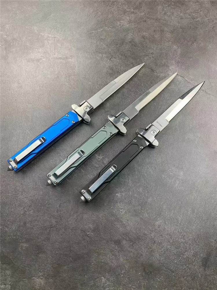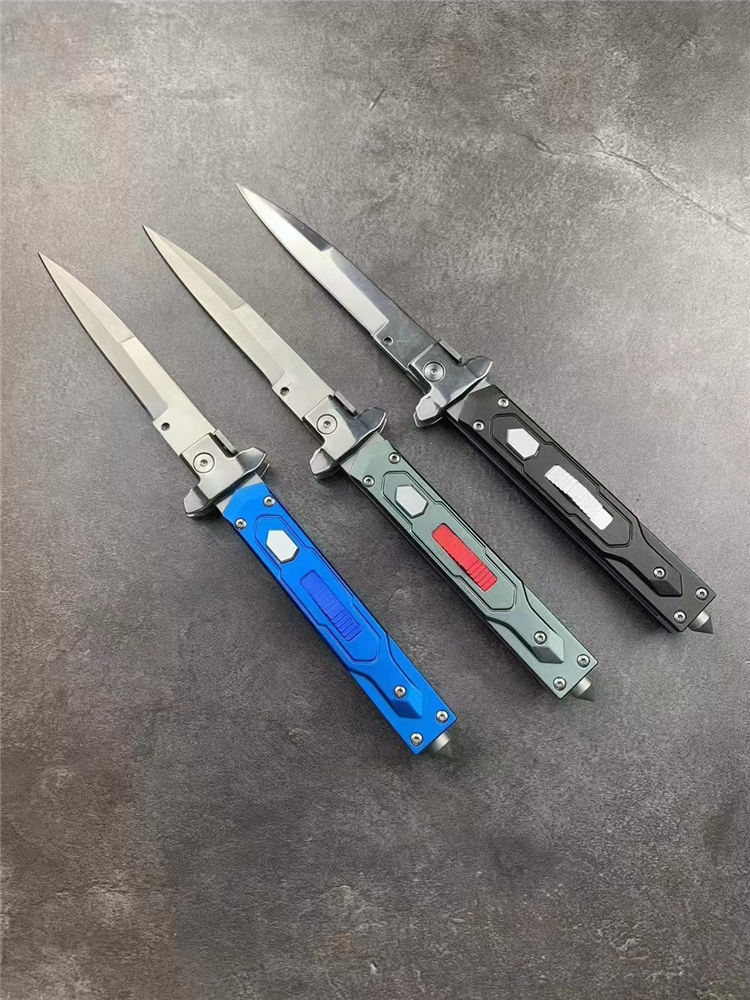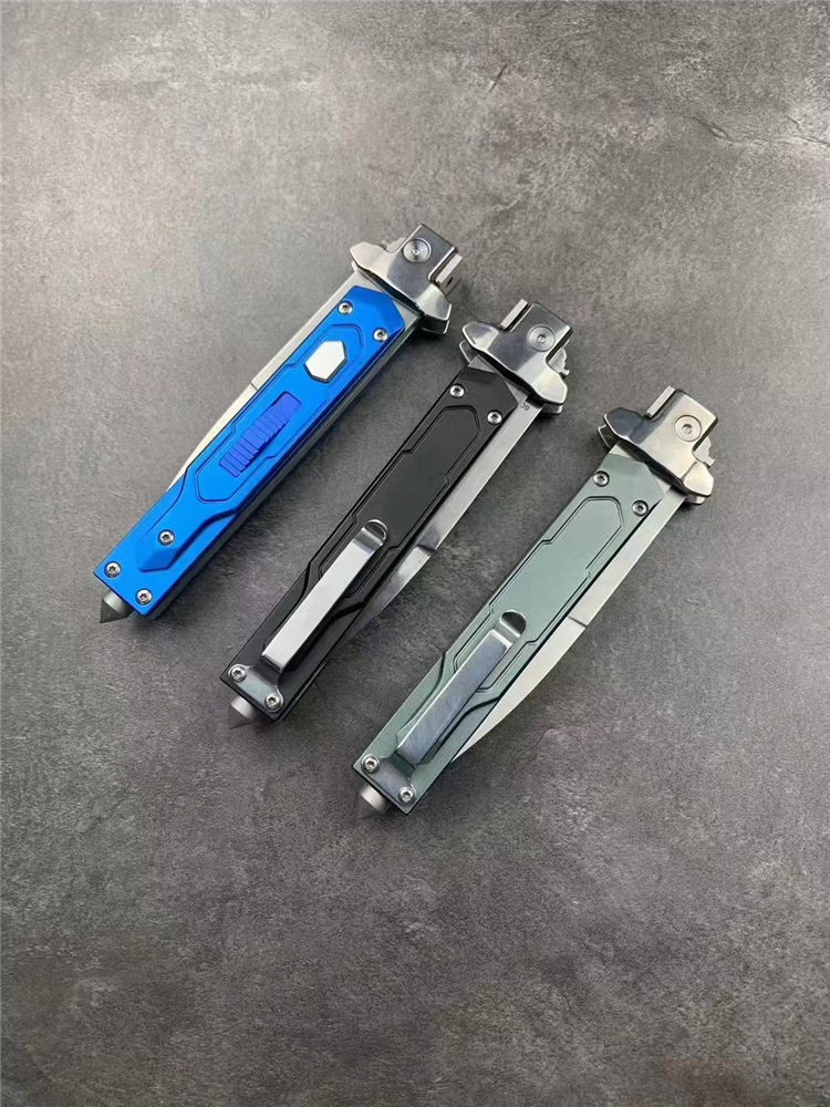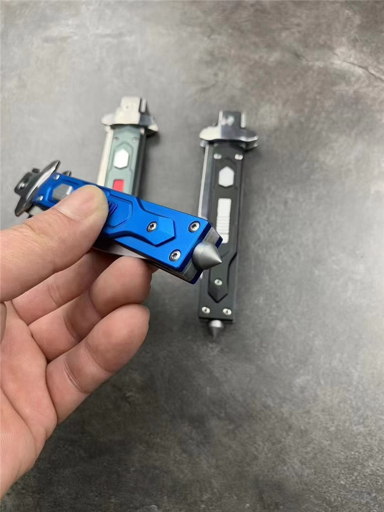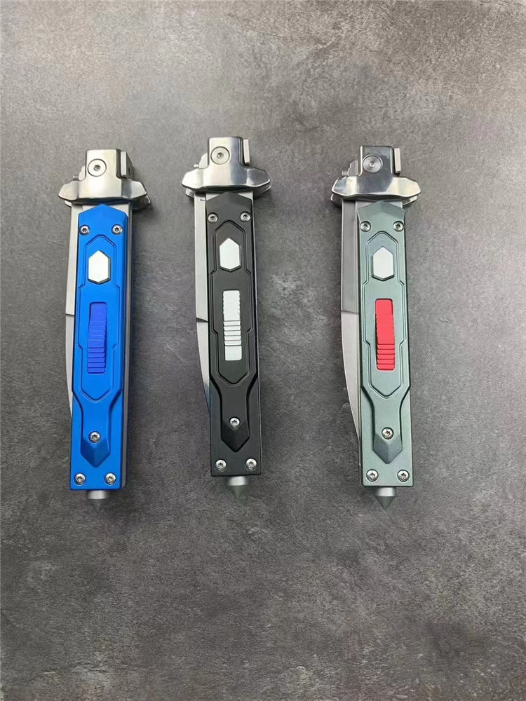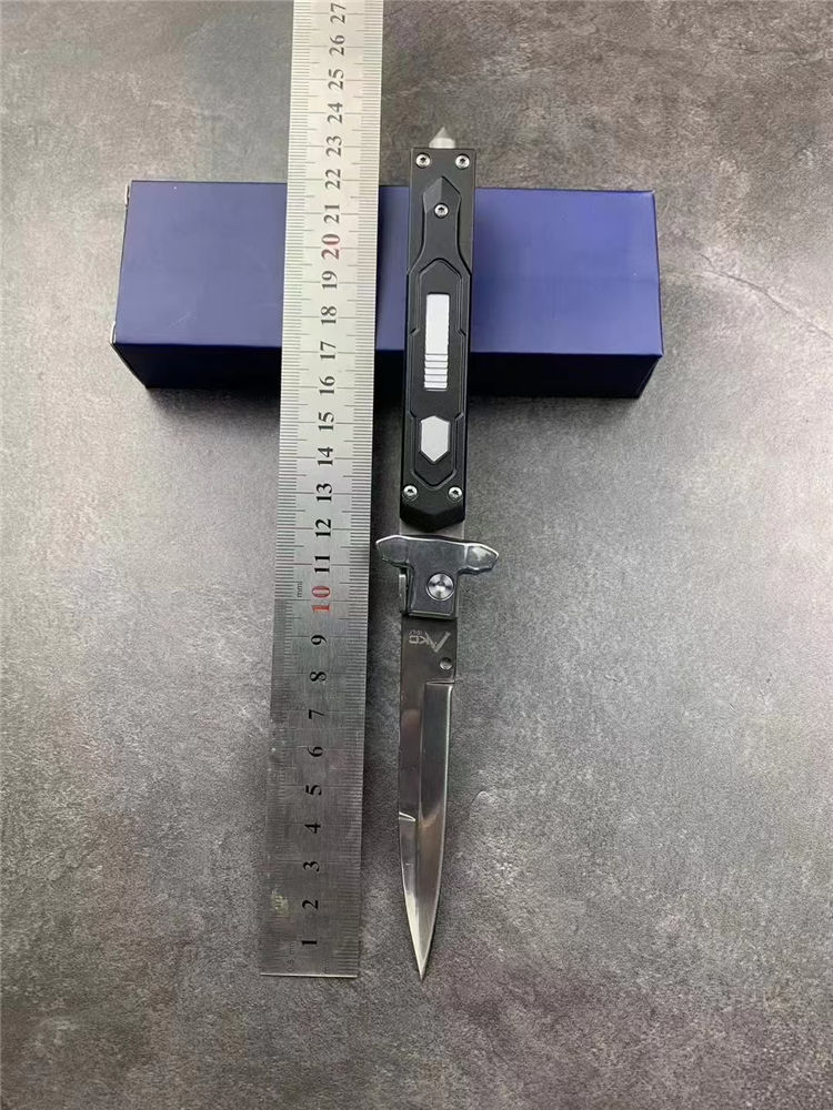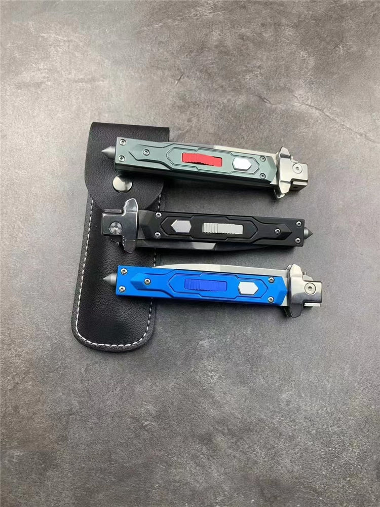 意大利AKC黑手党赌徒侧开跳刀 全长:23cm 刃长:9.8cm 柄长:110mm 刃厚:2.5mm 刃材:8cR18MOV 刀柄:铝合金 功能:可破窗,带破窗尾锥 重量:140克 配皮套彩盒