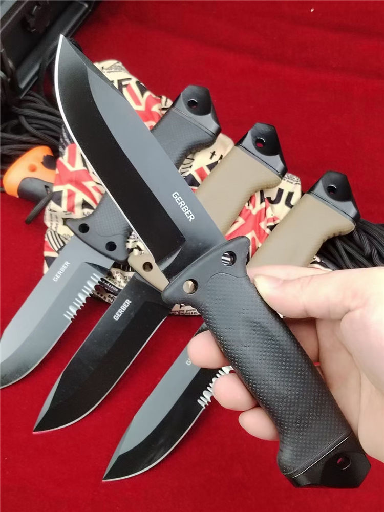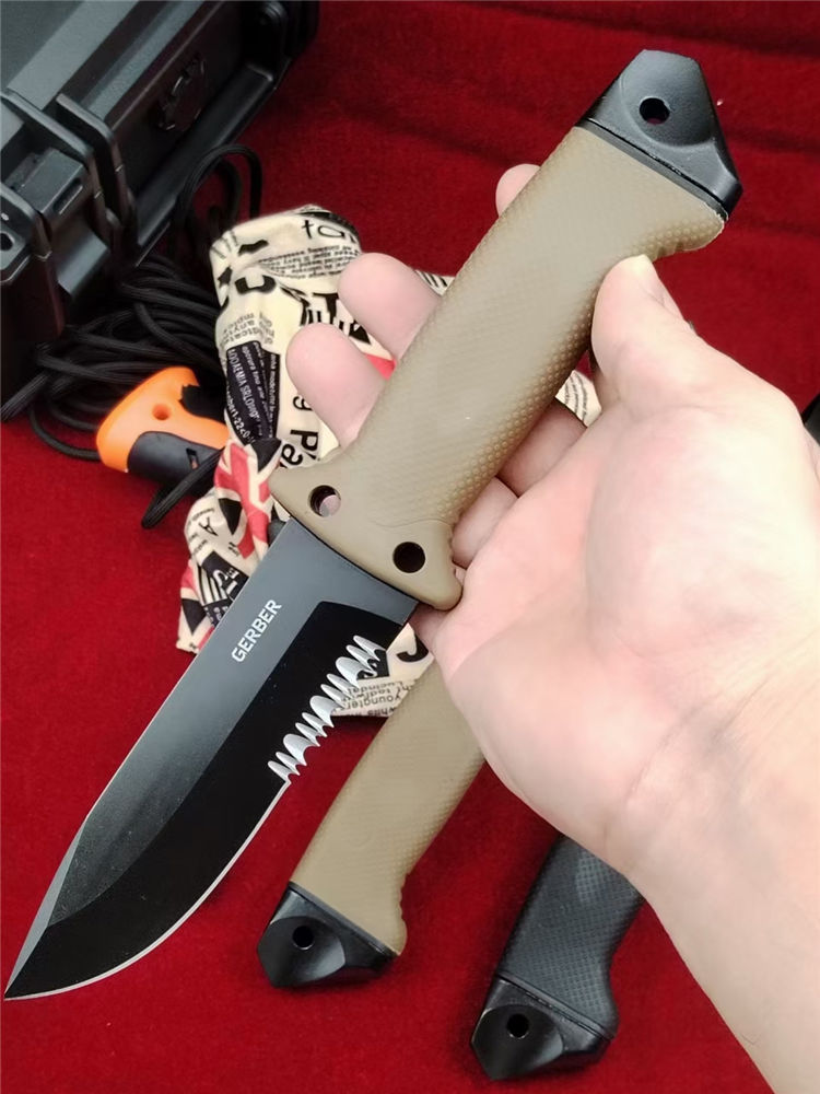 戈博LMF2步兵直刀 全长:268mm 刃长:125mm 柄长:123m 刃宽:32mm最宽处 刃厚:5.0mm 刃材:420HC进口钢 刀重:317g/495含K鞘 毛重:723g(含包装盒绑腿带) 硬度:58-60HRC 表面:黑钛纳米钢珠喷砂涂层 柄材:Softgrip特殊橡胶材料防滑手柄 结构:一体龙骨成型 配套:ABS塑料K鞘 包装:原装包装+说明书+绑腿带