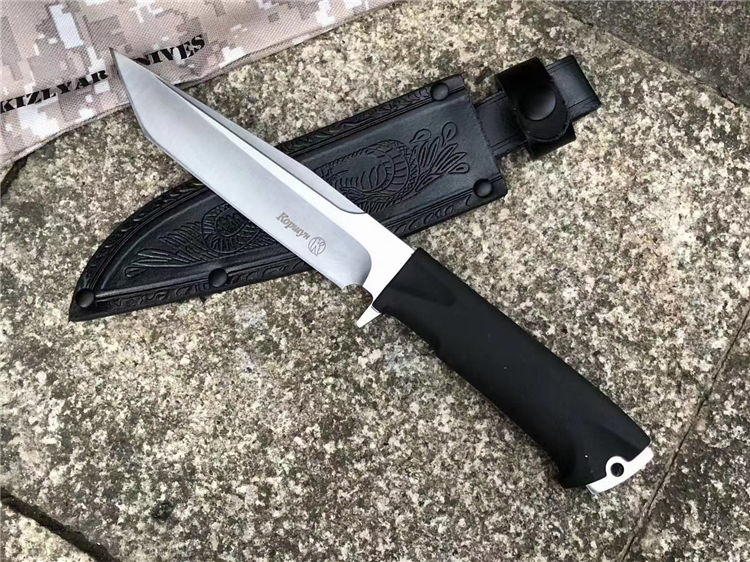 俄罗斯克服2平头版直刀 总长:291mm 刃长:163mm 刃厚:5mm 刃宽:31mm 钢材:65X13特钢,耐腐蚀碳素工具钢,相当于美国CPM154钢 硬度:60HRC专业真空热处理 重量:265克含鞘342g