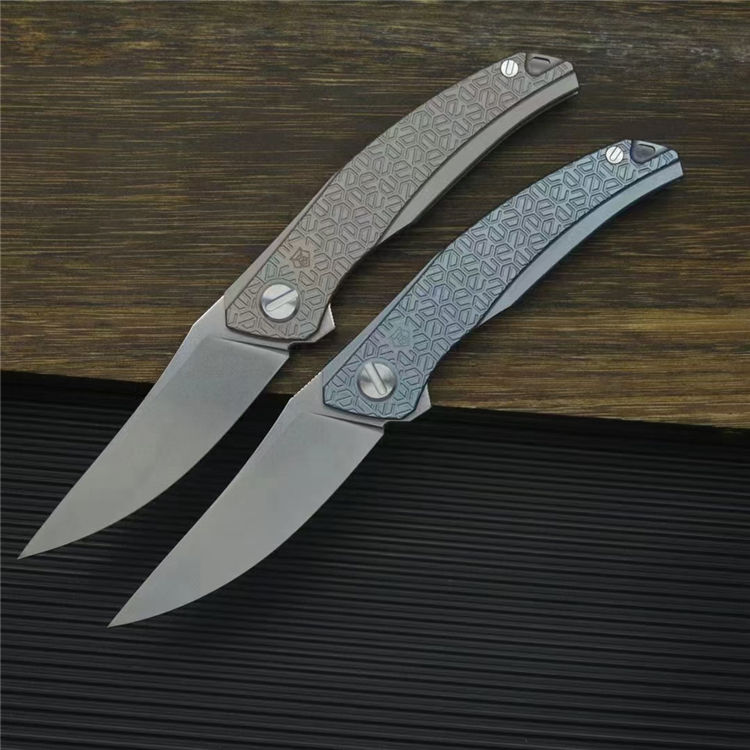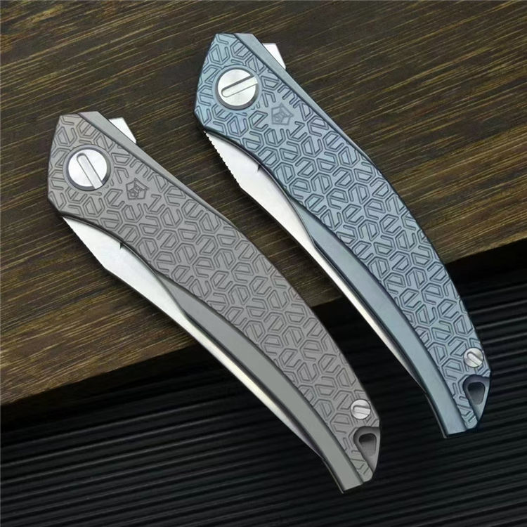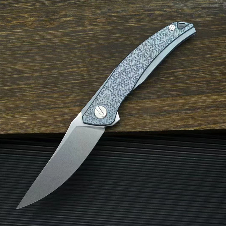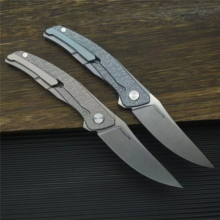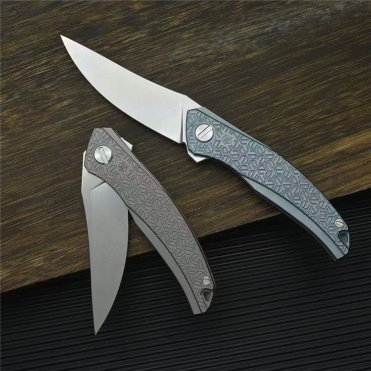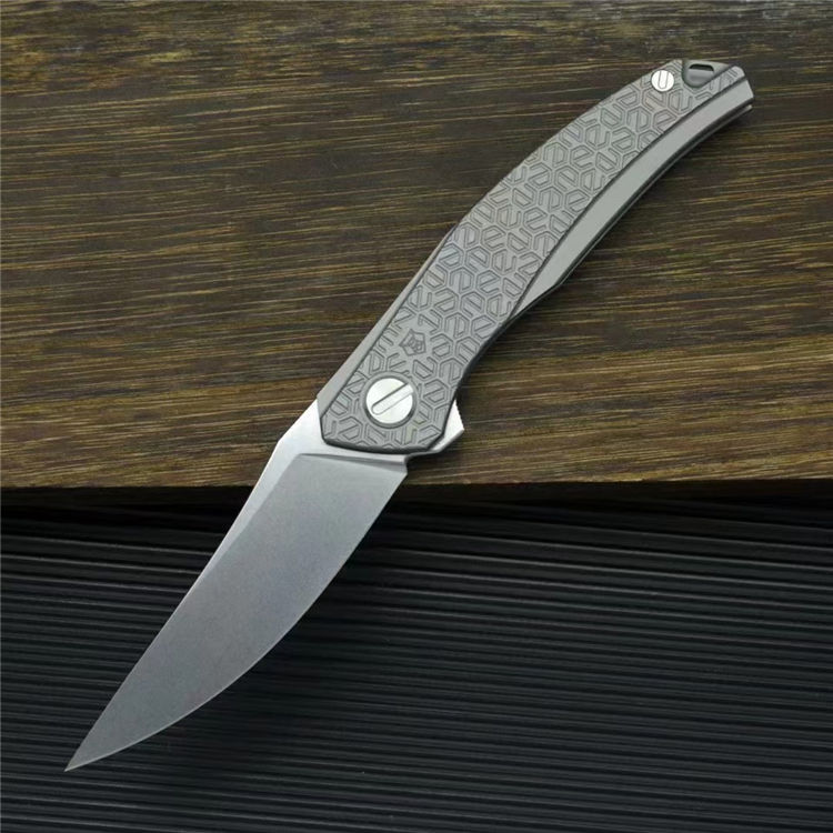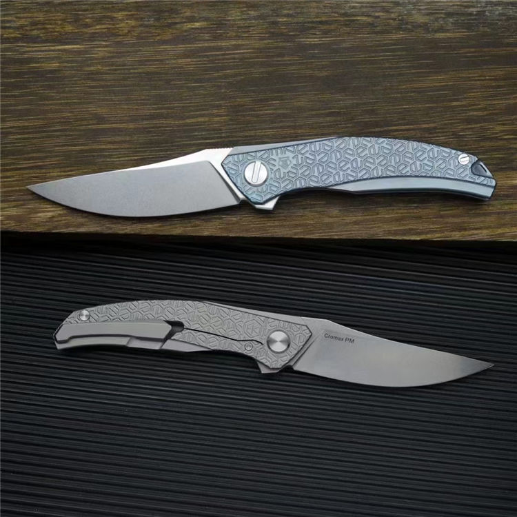 熊头量子折刀 总长:22.6CM 刃长:10.2CM 刃宽:2.9CM 厚度:4MM 材质:Cromax PM 柄材:钛合金 柄长:13.1CM 重量:127克 双排陶瓷轴承