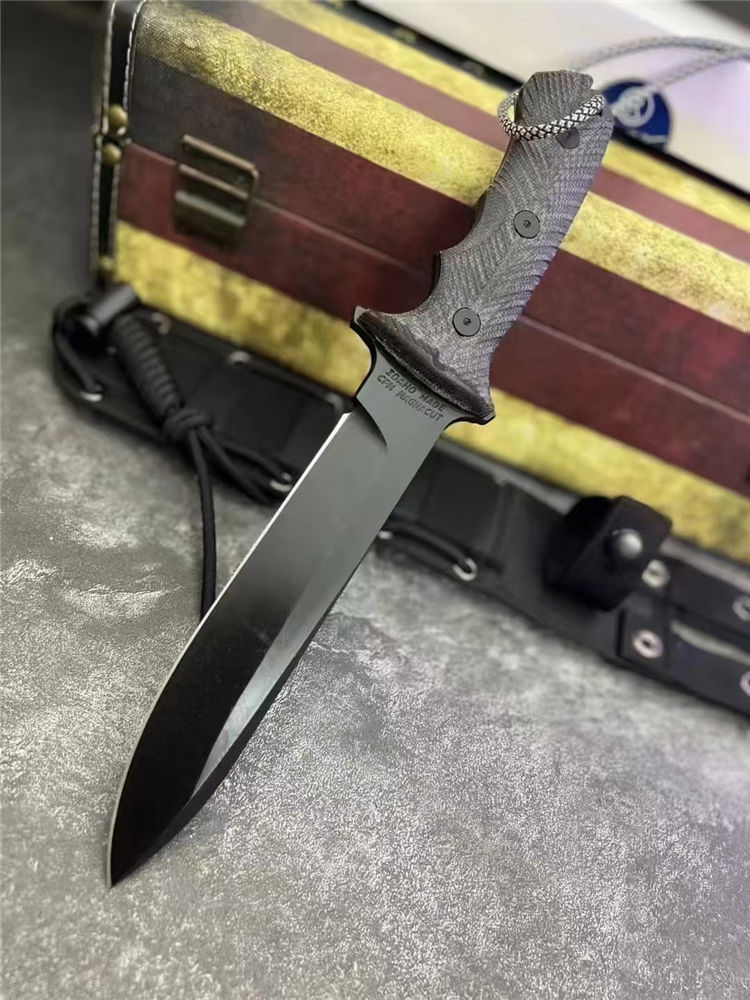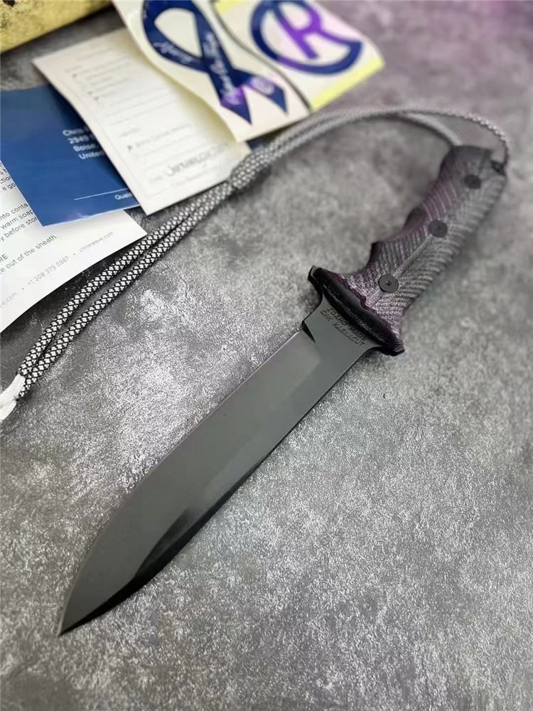 克里斯里夫太平洋7寸绿扁帽直刀 总长:31.5cm 刃长:16.5cm 厚度:0.62cm 硬度:61HRC(深冷处理) 钢材:CPM-magnacut粉末钢神钢 手柄:台湾太空亚麻 表面:灰钛(真空镀钛) 附件:战术尼龙鞘附带全套包装证书,美国迷彩伞绳子(可吊起150公斤重物)