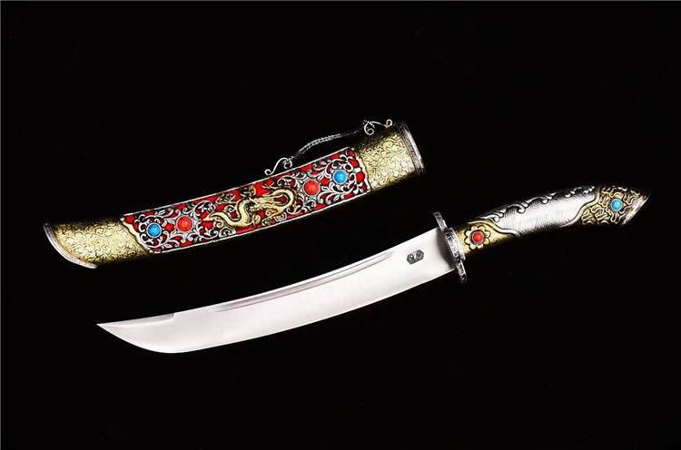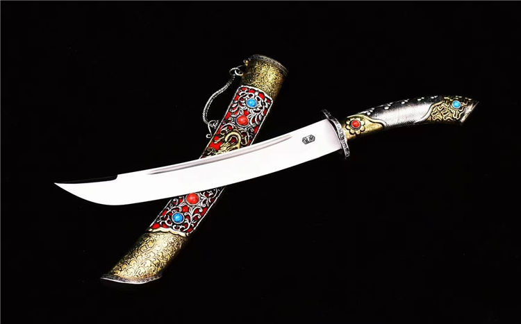 开槽研磨,实木柄鞘包裹铜制手工雕刻装具,非常适合收藏把玩,适合收藏把玩送礼