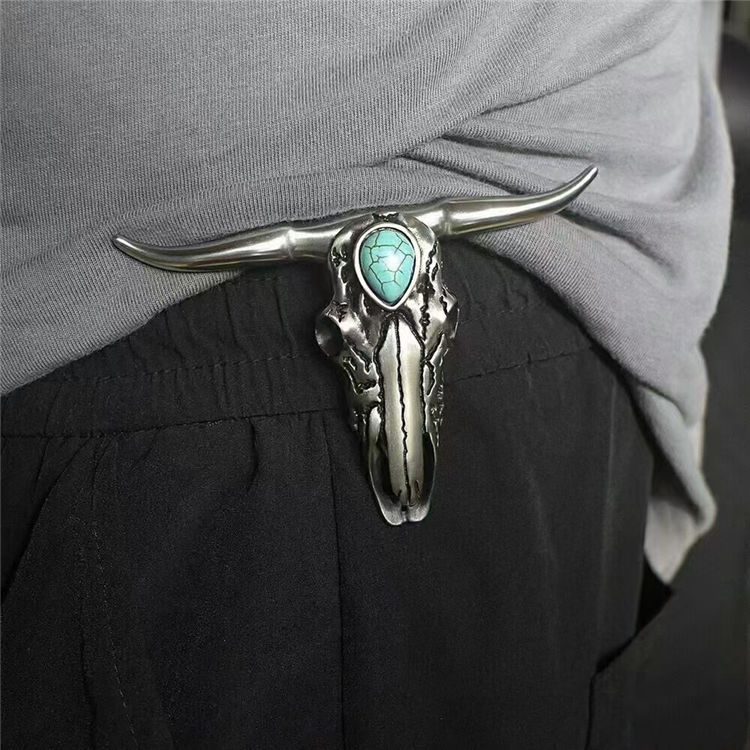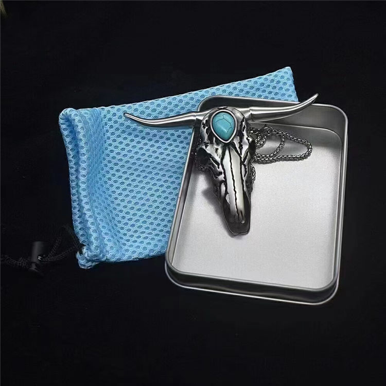 牛头:316不锈钢+绿松石(天然纹路颜色各异)