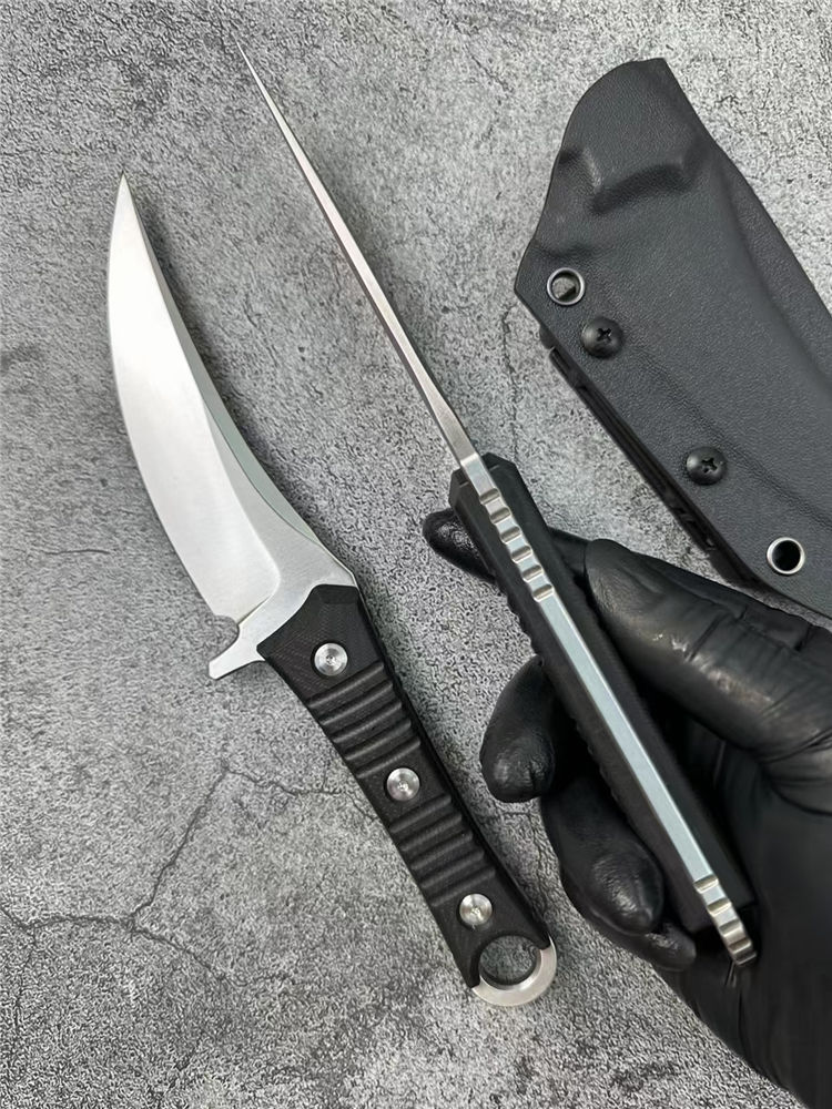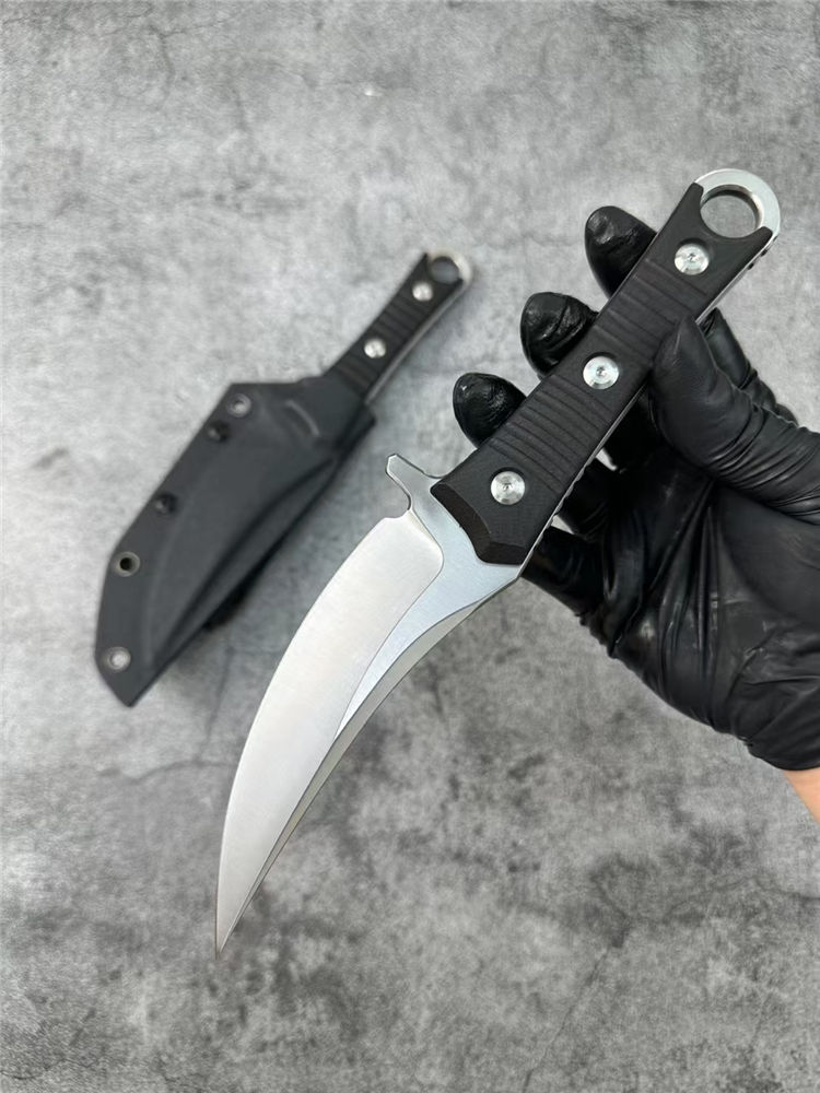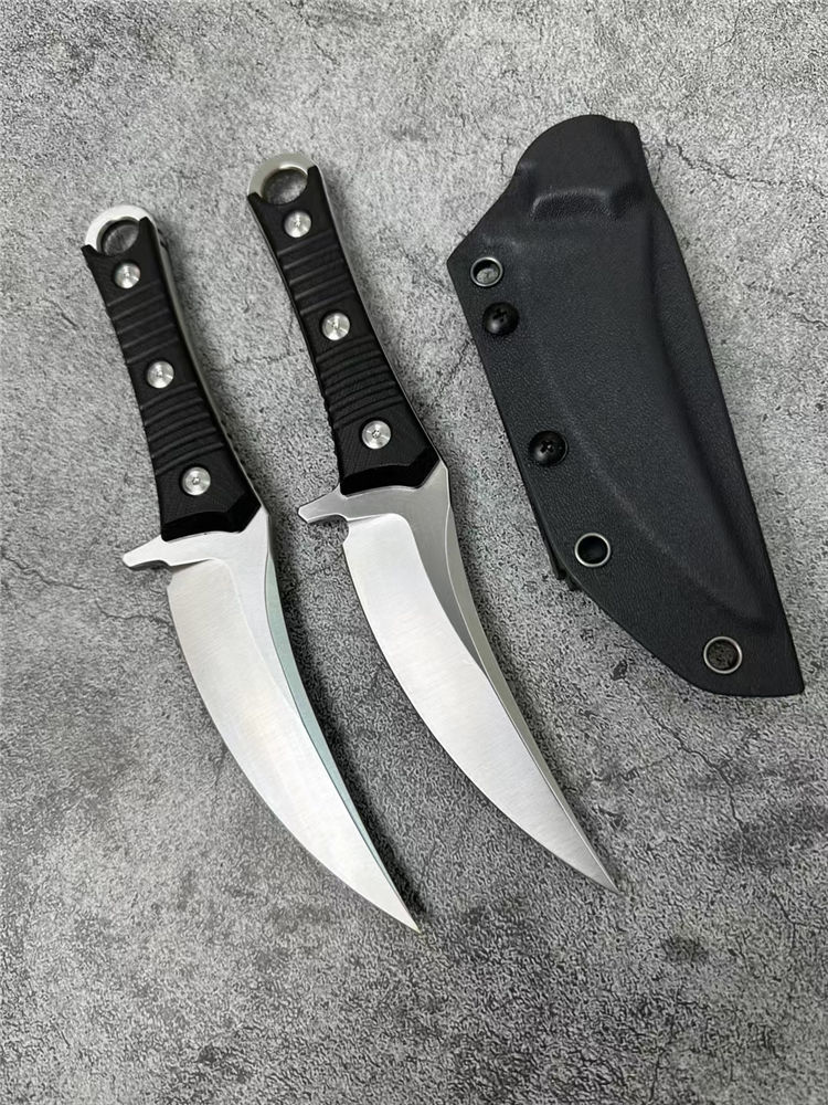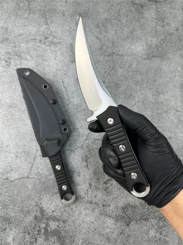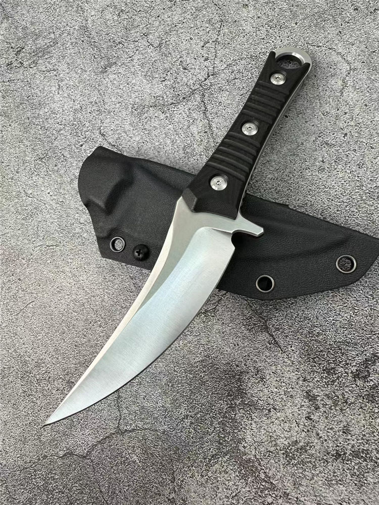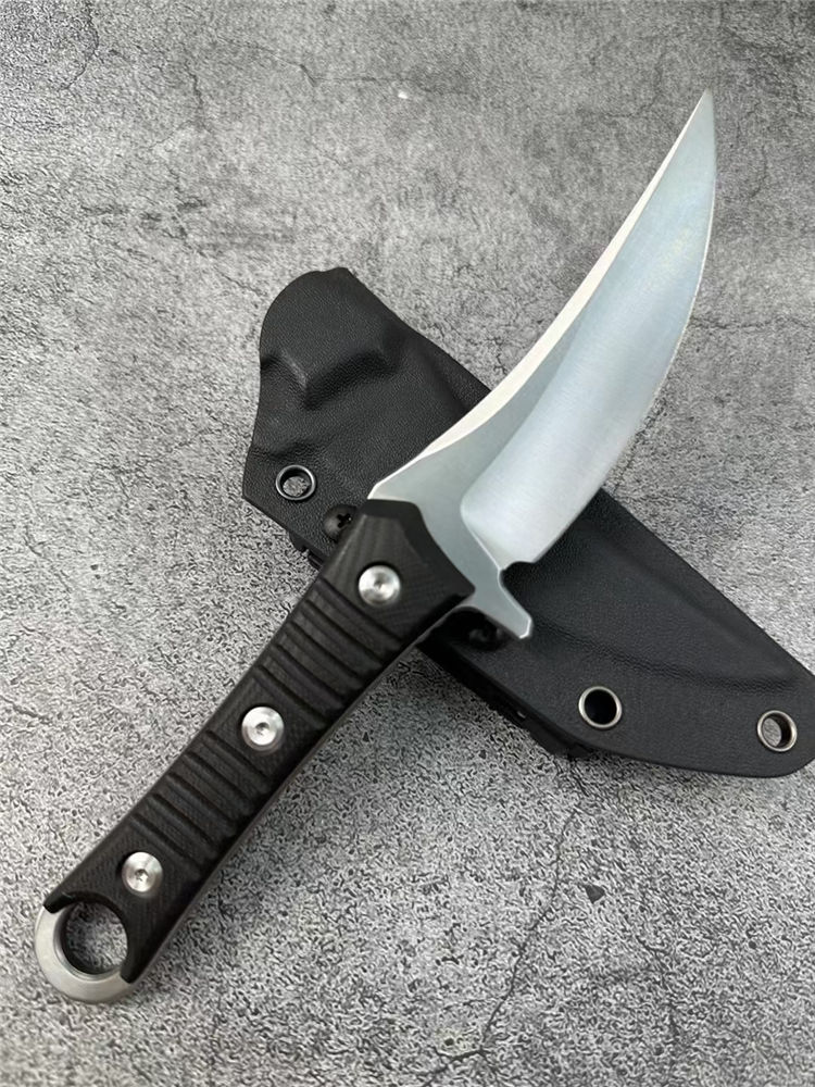 美国TOPS尖端冷酷开膛直刀 全长:23mm 刃长:11mm 刃材:9CR13Mov 硬度:59HRC 表面:沙光 刃厚:4.5mm 柄长:11.5mm 柄材:黑色G10 重量:285克,裸刀重:195克 包装:精美合子