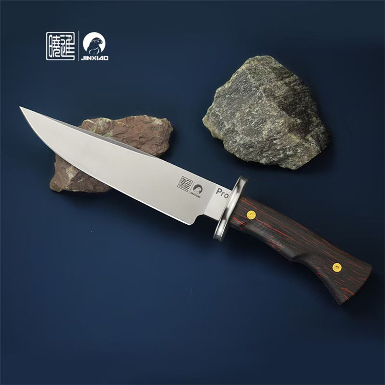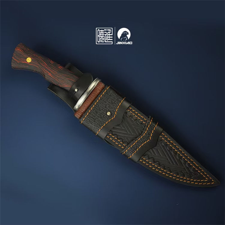 雁翎PRO直刀 全长:340mm 刃厚:5mm 钢材:1095高碳钢 刃长:210mm 柄长:130mm 硬度:60H± 柄材:G10 刃宽:42mm 重量:435克 刀鞘:植鞣皮