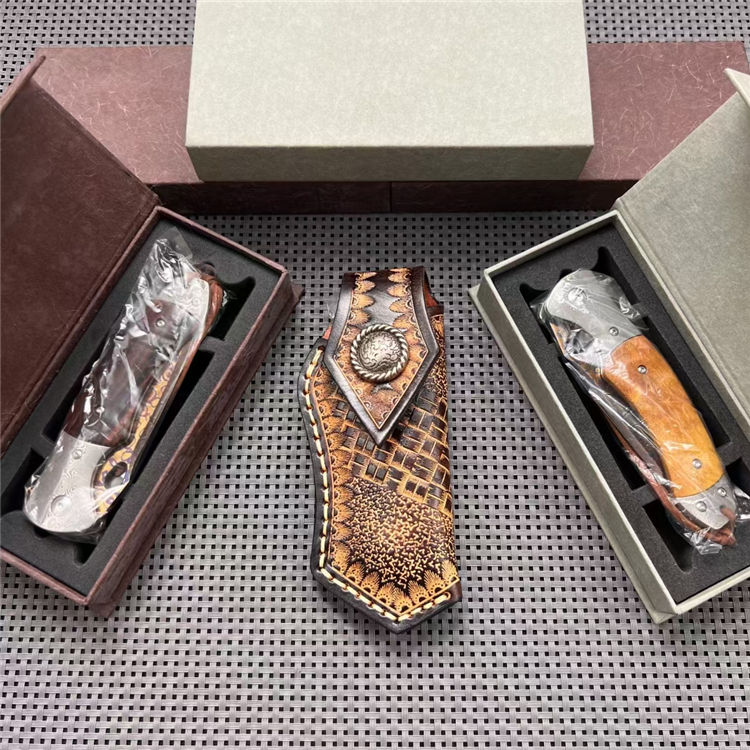大马士革星图粉末折刀 总长:20.5cm 刃长:9cm 柄长:11.5cm 刃厚:3mm 刃材:粉未钢大马士革钢 表面:烤蓝 柄材:美国进口沙铁美国进口沙铁木/进口稳定木 净重:172g 总重:224g 包装:进口意大利植鞣革牛皮手工缝制