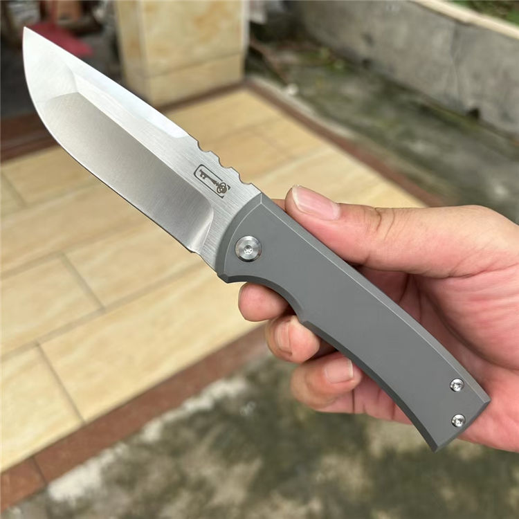 Chaves Knives查韦斯救赎者折刀 全长:20.8cm 刃长:9.1cm 闭合:11.6cm 刃厚:4mm 刃宽:3.3cm 柄厚:13.5mm 刃材:VG10钢(标打M390) 硬度:60-61HRC 表面:拉丝砂光 柄材:TC4钛合金 背夹:TC4钛合金 结构:陶瓷轴承 刀重:188克 包装:原装彩盒