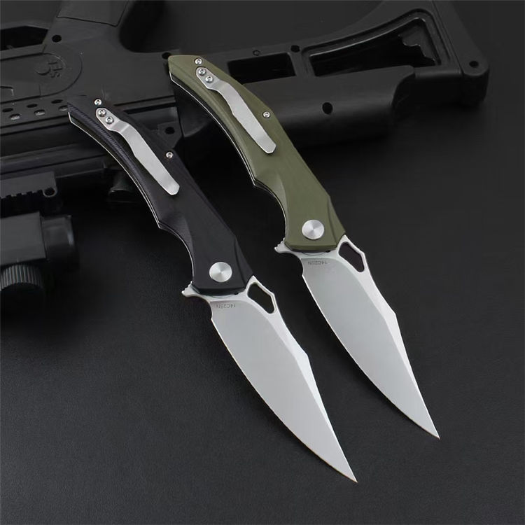 蜻蜓战术折刀 全长:21cm 刃长:9.3cm 柄长:10.7cm 刃厚:0.35cm 刃宽:3cm 刃材:D2 柄材:防滑G10片 硬度:58HRC 刀重:124克 净重:154克(含包装) 表面:砂光 包装:黑色礼品盒