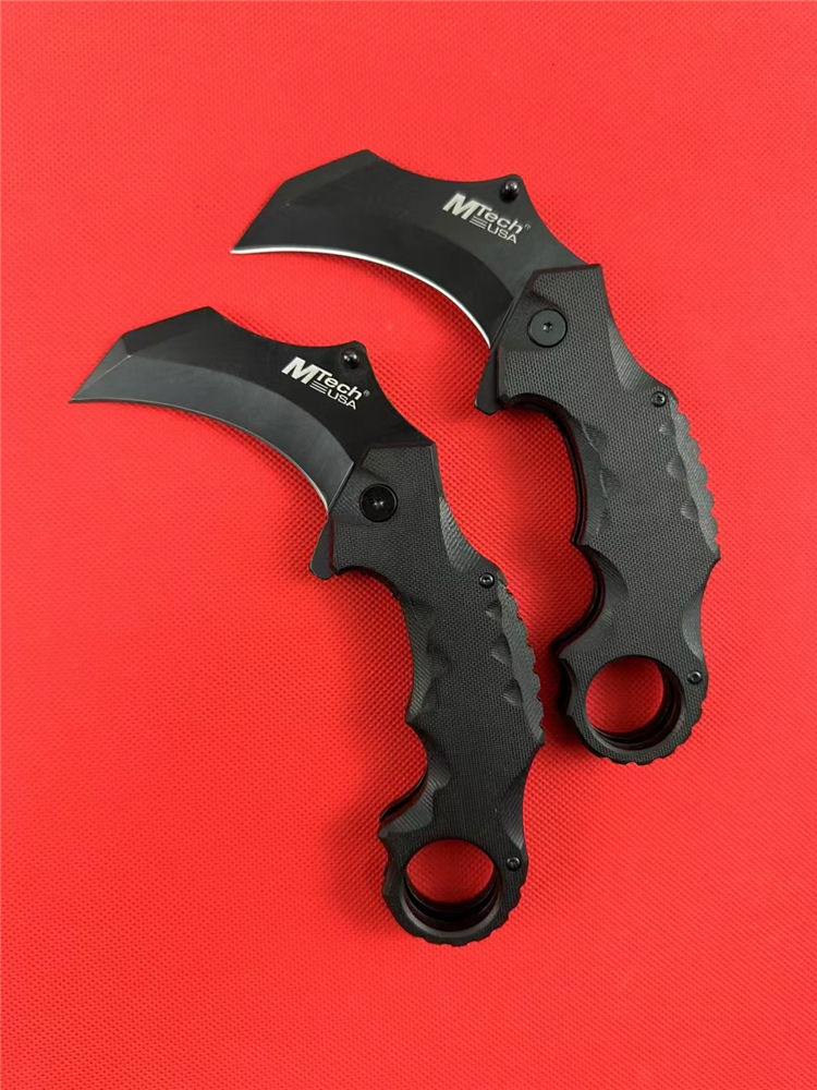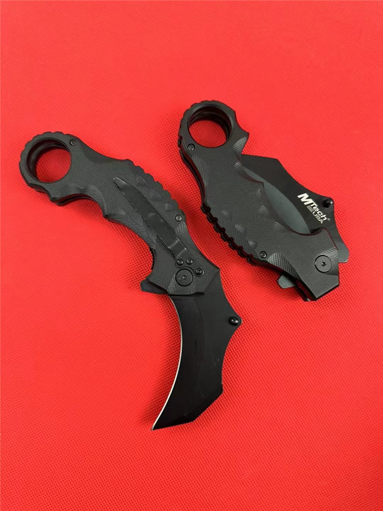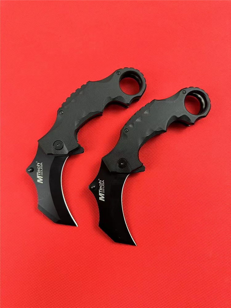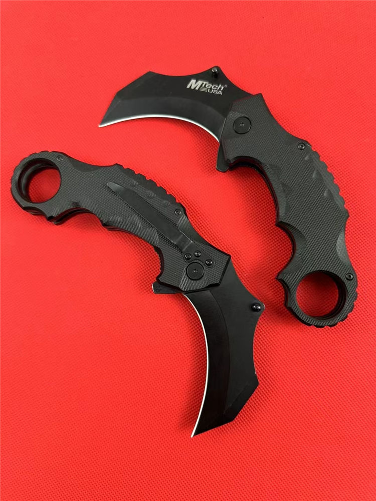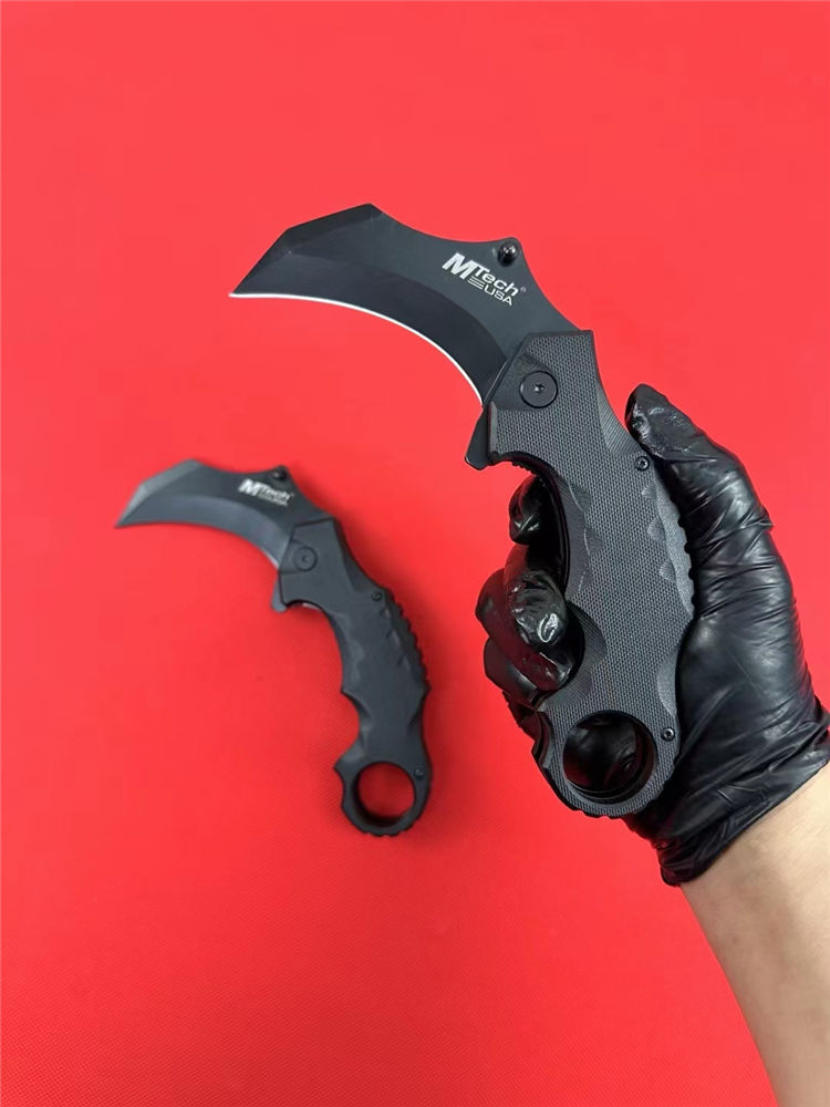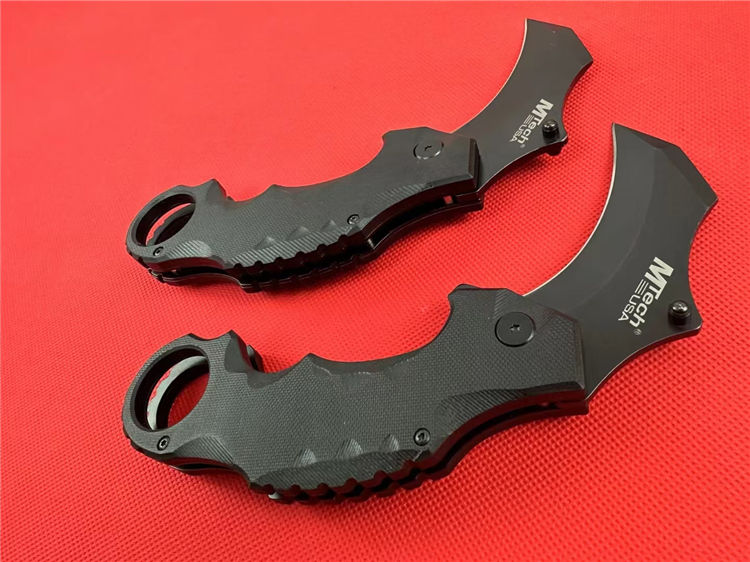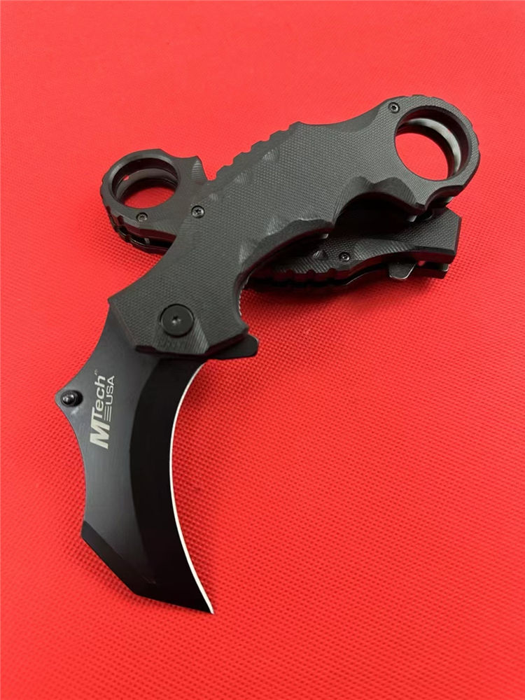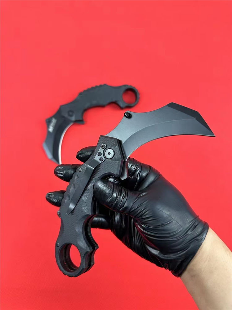 MT巨灵折叠爪刀 全长:185mm 刃长:75mm 柄长:135m 刃宽:37mm最宽处 刃厚:3mm 刃材:440C 刀重:197g 硬度:59-60HRC 表面:数控磨+发黑处理 柄材:G10