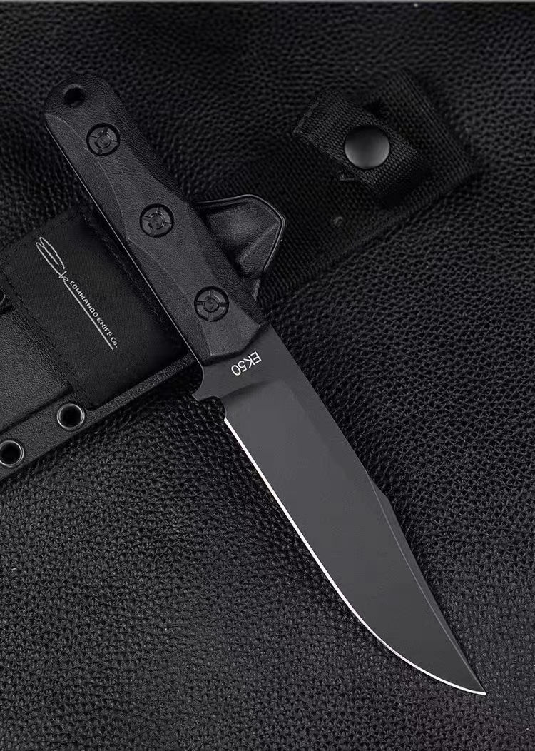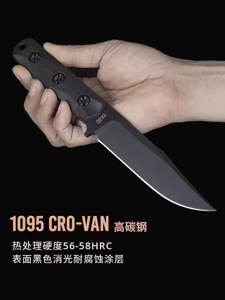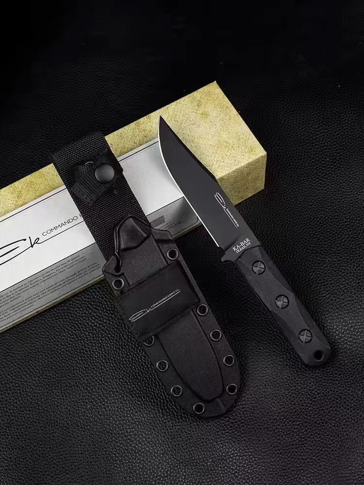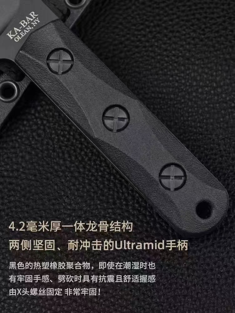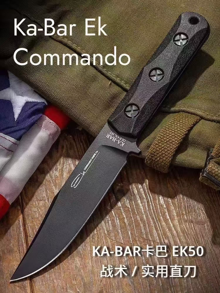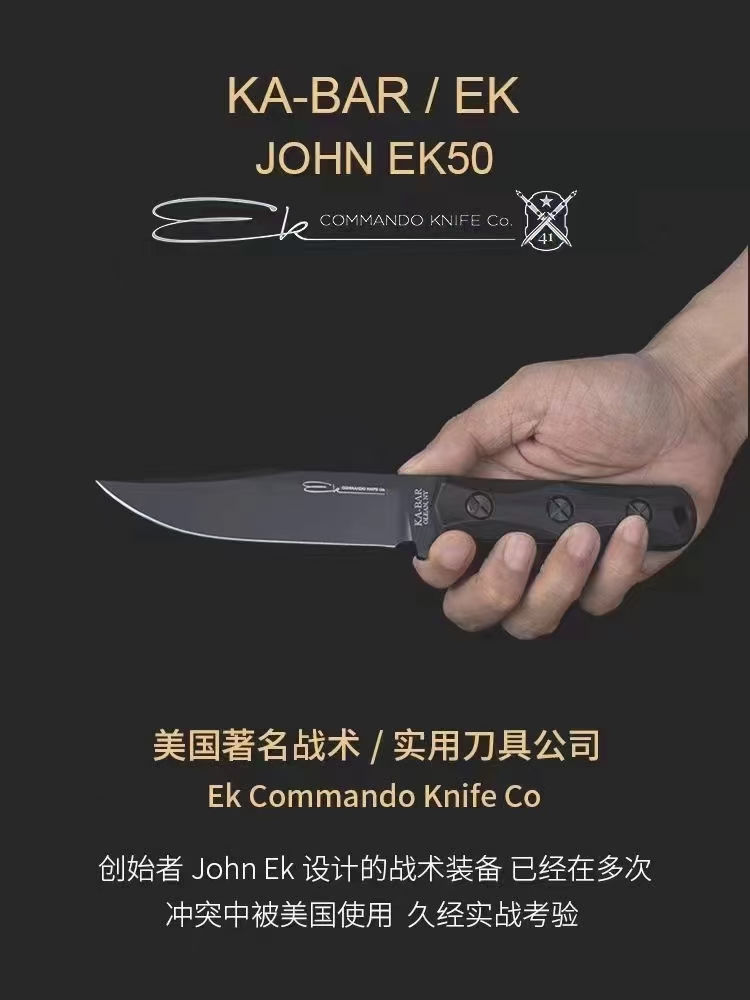 卡巴EK50直刀 全长:233mm 刃长:126mm 柄长:107m 刃宽:29mm最宽处 刃厚:4.2mm 刃材:1905Cro-Van进口钢 刀重:184g/269g含皮 毛重:467g(含包装盒) 硬度:58-60HRC 表面:黑涂色层喷砂 柄材:高工级程ABS+玻纤手柄 结构:一体骨龙成型 配套:ABS塑料K鞘 包装:原包装装+说明书