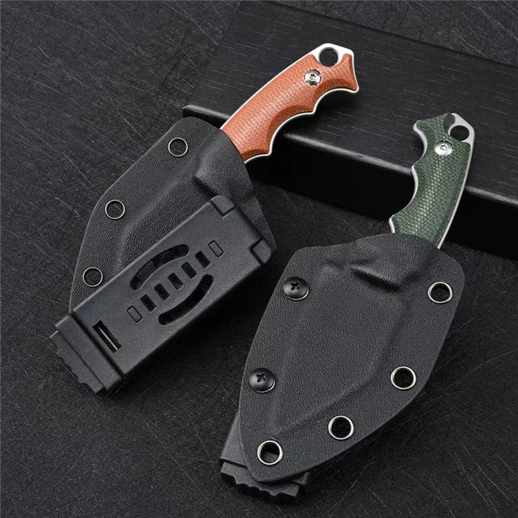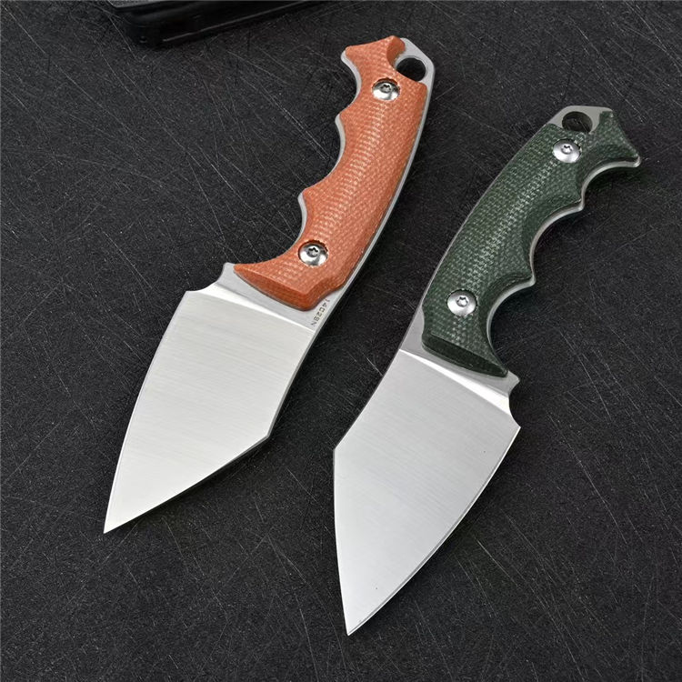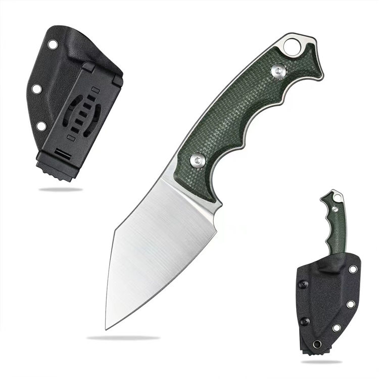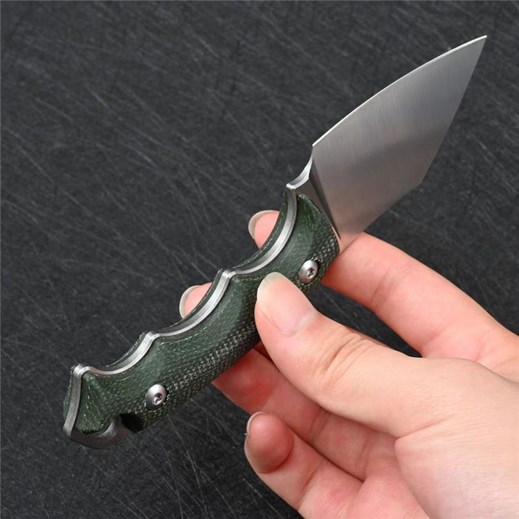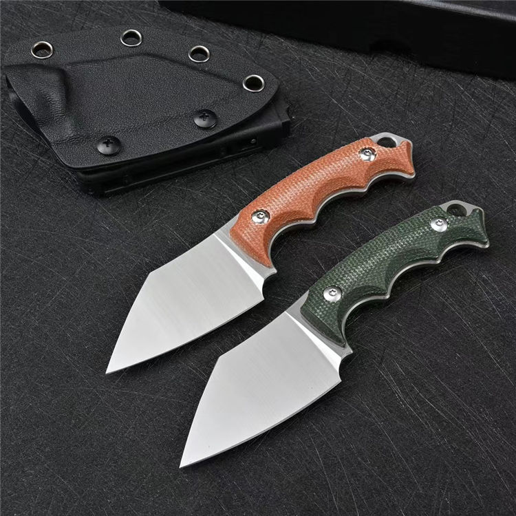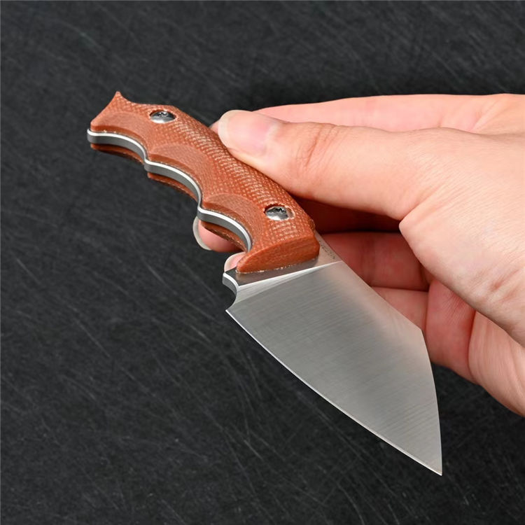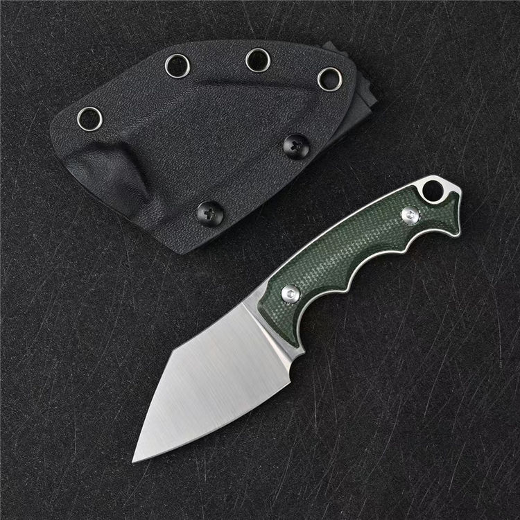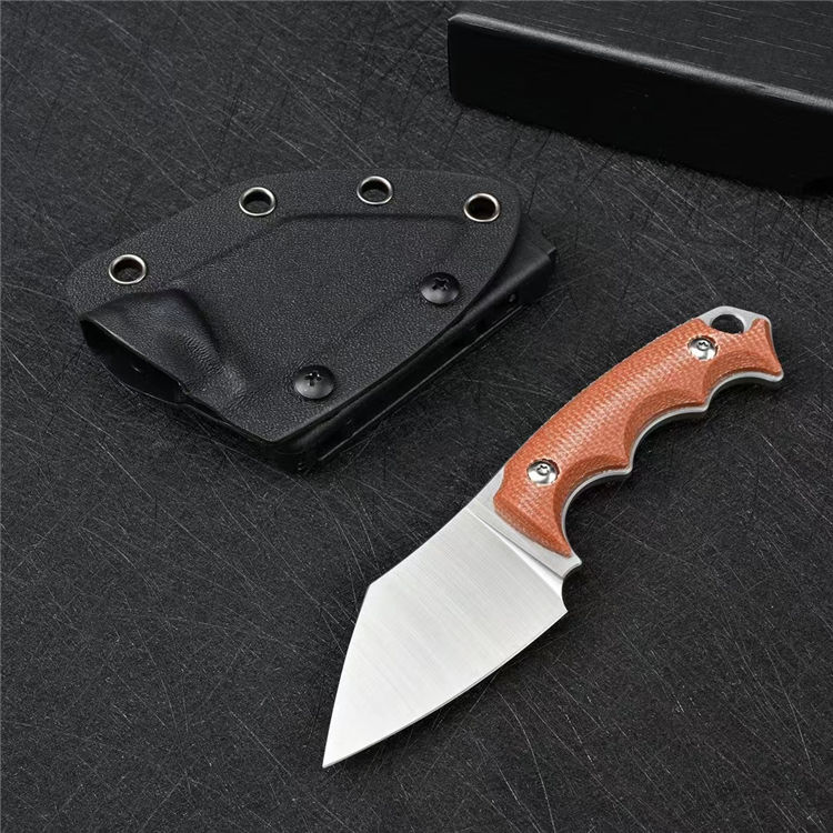 巴斯蒂内利战舰直刀 全长:14.9cm 刃长:6.1cm 柄长:8.3cm 刃厚:0.3cm 刃宽:3.3cm 刀重:72g 毛重:203g(包括刀套和包装盒) 钢材:山特维克14c28n钢 柄材:亚麻 硬度:59-61HRC 表面:砂光 包装:礼盒 刀鞘:K鞘