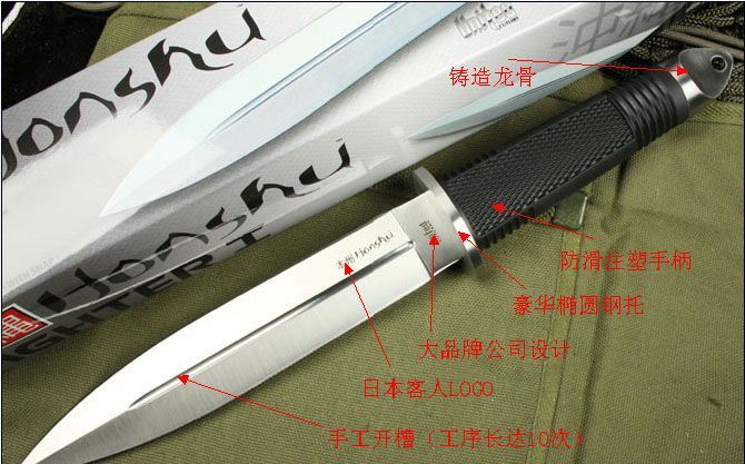 联合刀具UC-冲绳双锋猛将(OEM代工) 全长:33.5cm 刃长:19cm 柄长:14cm 刃厚:4.8mm 刃宽:3.2cm 刃材:5Cr13 柄材:龙骨注塑 硬度:57HRC 净重:320克 毛重:530克(含包装物) 表面处理:钢本色 本产品由UC(联合刀具)公司设计。国内代工出口日本。选料、做工要求严格,手工精细,此刀深受刀友们共赏和收藏。