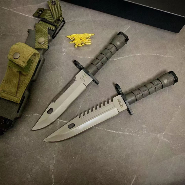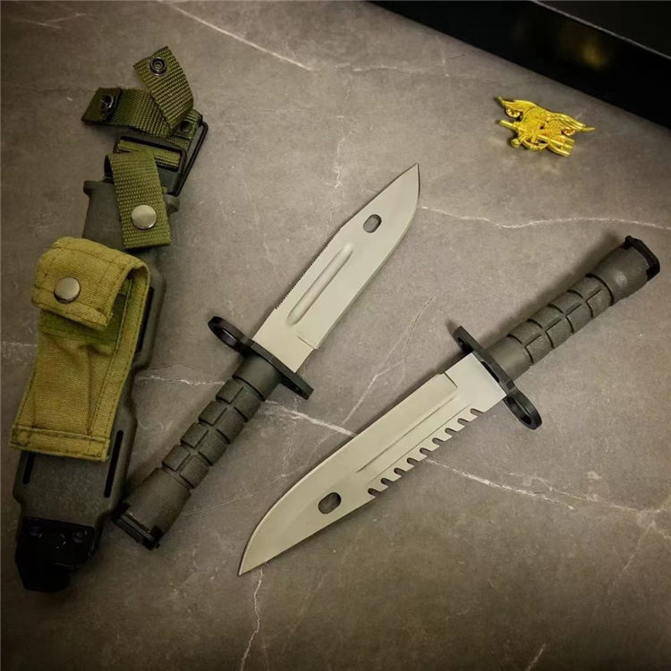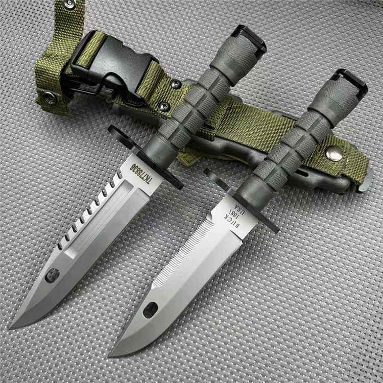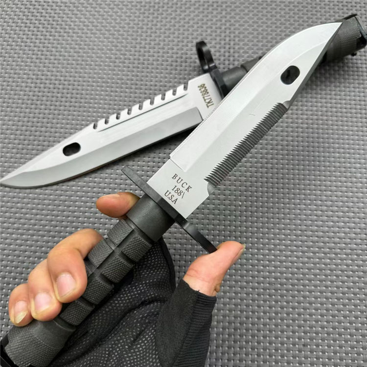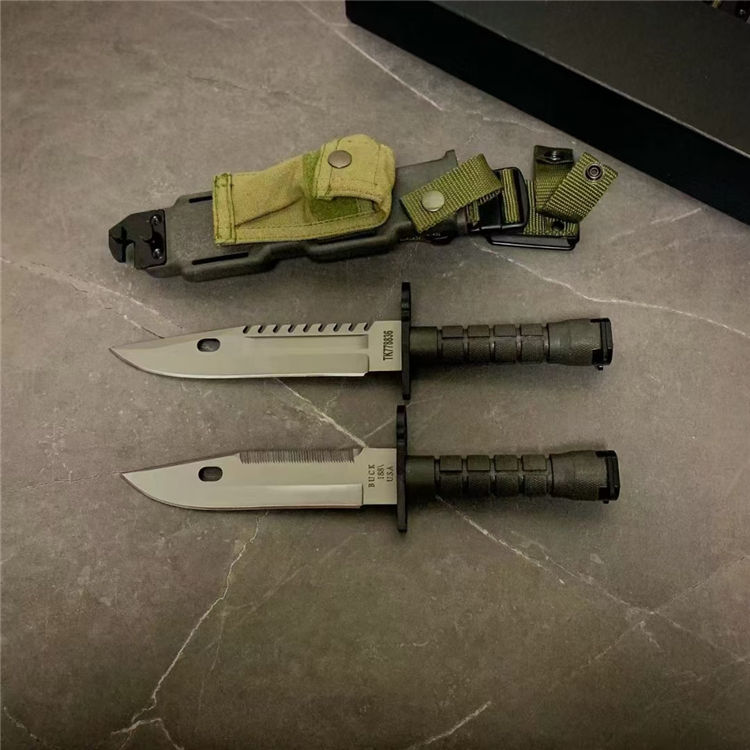 巴克BUCK现役M9-D80军刀 全长:31cm 刃长:16cm 柄长:12CM 刃宽:3.7cm 刃厚:6mm 刃材:7CR17 硬度:58HRC 重量:刀430g+鞘395g 表面:喷砂 柄材:绝缘强化塑胶 刀鞘:绝缘强化塑胶 巴克BUCK现役D80军刀 全长:32.5cm 刃长:17.5cm 柄长:12CM 刃宽:3.7cm 刃厚:6mm 刃材:7CR17 硬度:58HRC 重量:刀430g+鞘395g 表面:喷砂 柄材:绝缘强化塑胶 刀鞘:绝缘强化塑胶