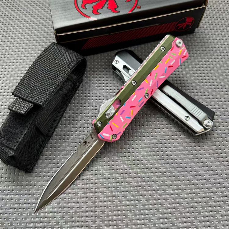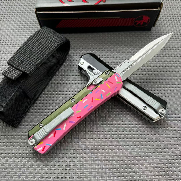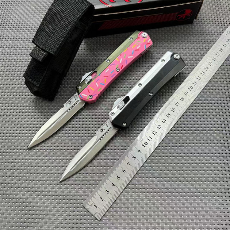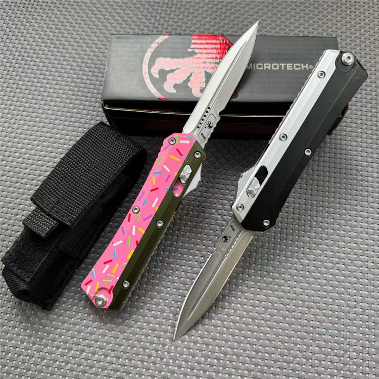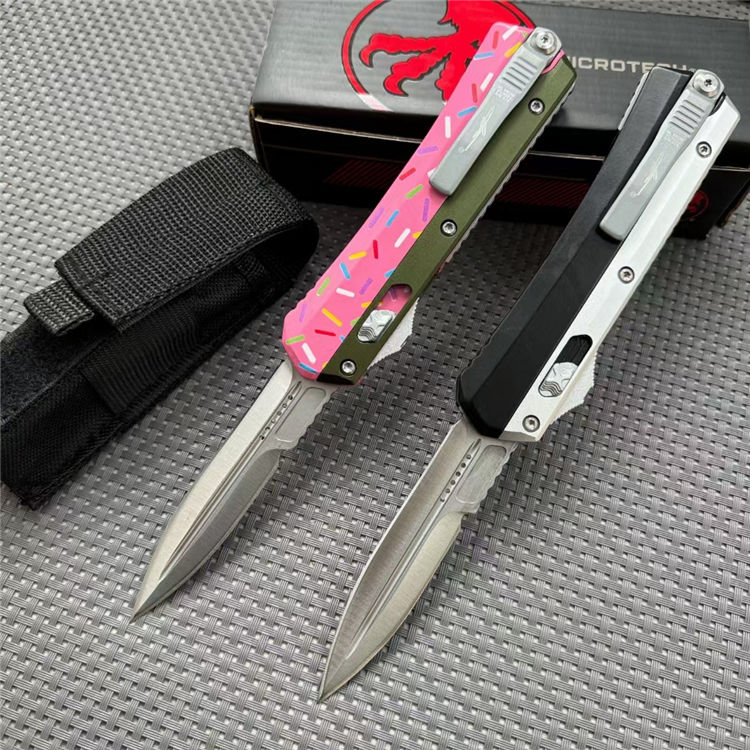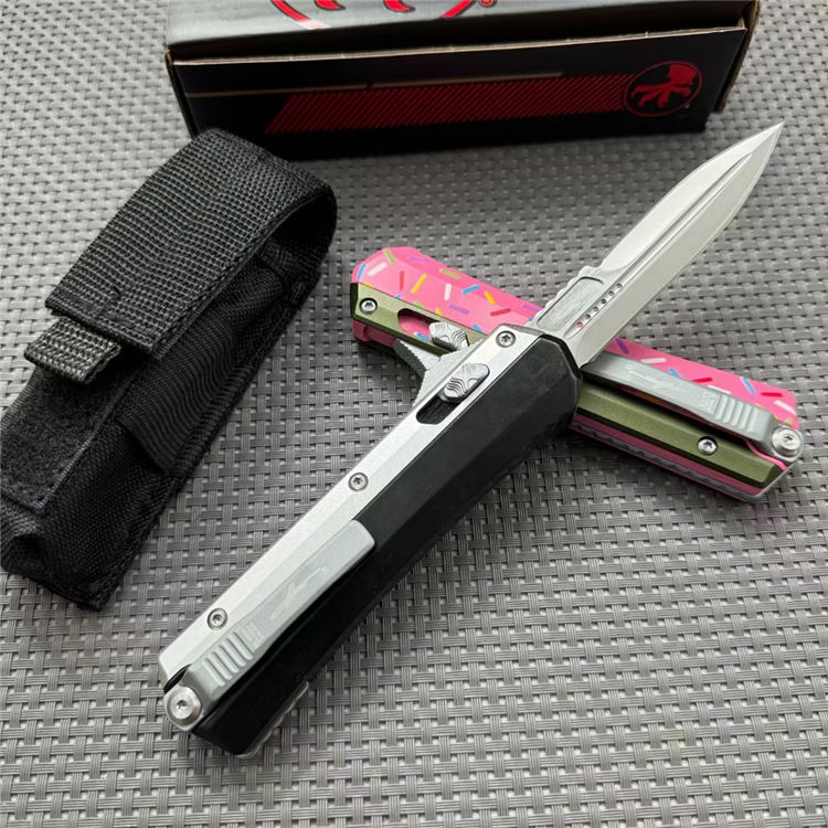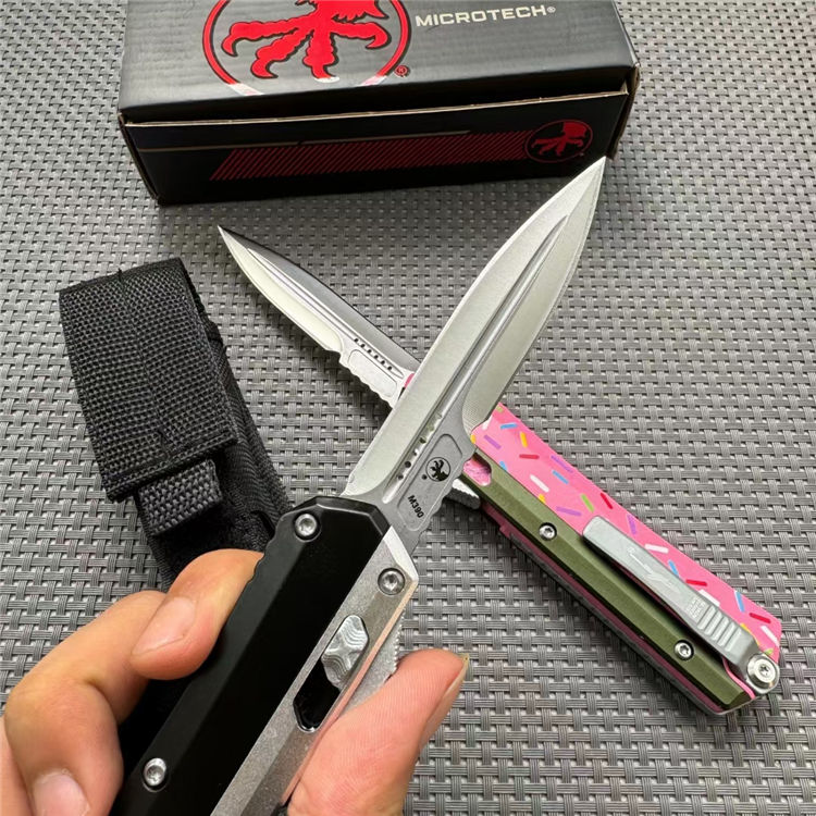 微技术蛇神锌铝柄直出跳刀 总长:220mm 刃长:89mm 柄长:130mm 刃厚:3mm 材质:5Cr1Mov(标M390) 柄材:锌铝合金 表面:石洗拉丝 硬度:58HRC 重量:269g(含包装) 包装:尼龙套+彩盒