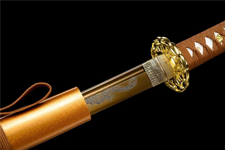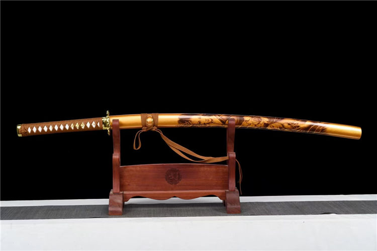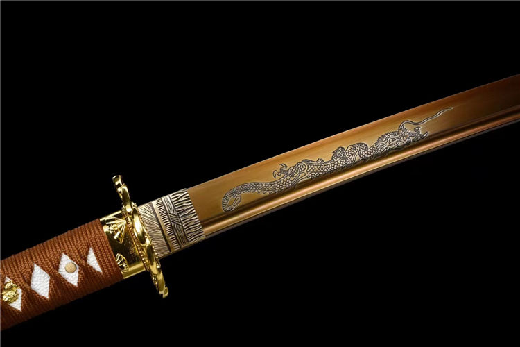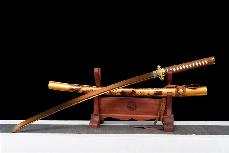材质:50#钢煅打,刀身烤金腐蚀雕刻