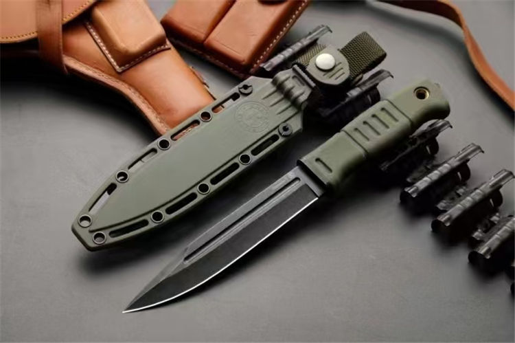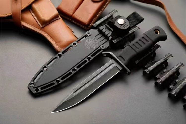 俄罗斯基兹利亚坎普直刀 全长:28.8cm 刃长:16.2cm 刃厚:4.8cm 刀重:264克 钢材:AUS-8 表面:黑铬防反光涂层 硬度:60HRC 手柄:克拉通 刀鞘:尼龙+%30玻纤 结构:一体穿心 带独立编号
