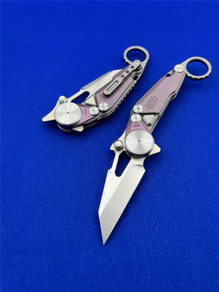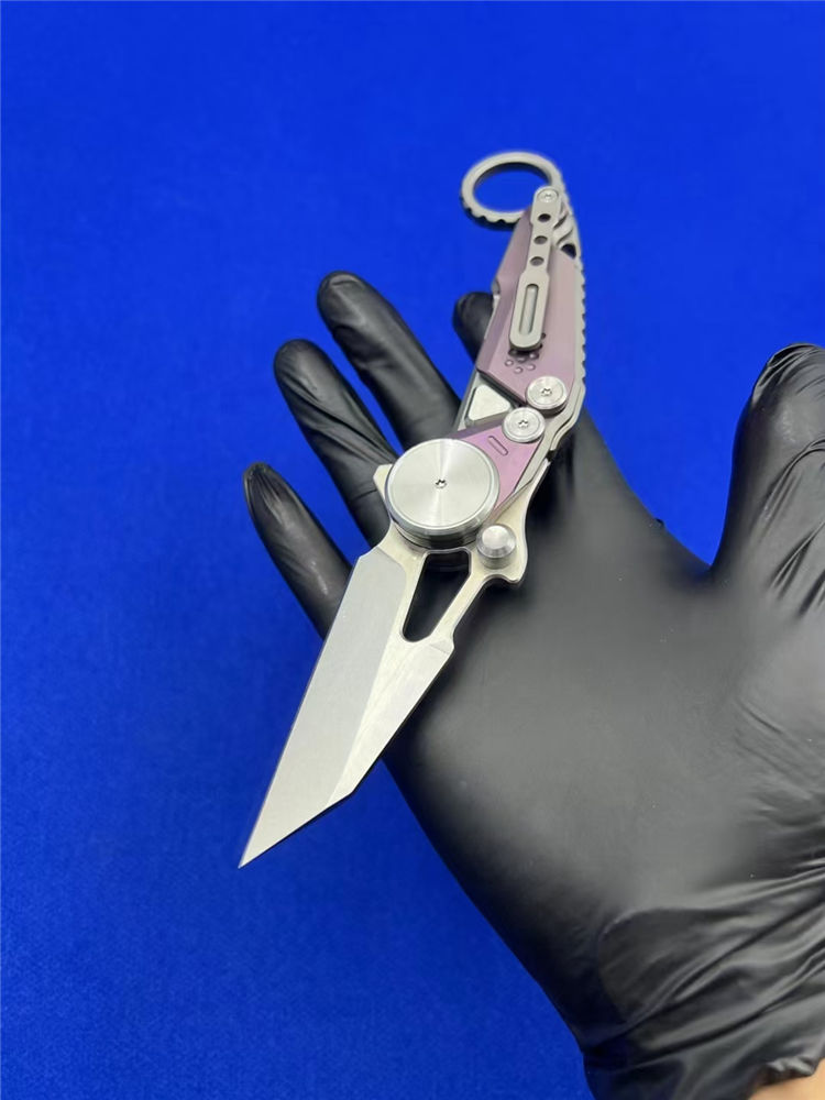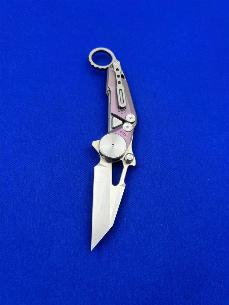 M390龙猫爪刀 总长:20cm 刃长:6.5cm 厚度:3.0mm 刃材:m390 硬度:61-62HRC(真空深冷热处理) 柄材:钛合金 轴承:滚珠轴承快开高端折刀 包装:刀袋➕黑色礼盒