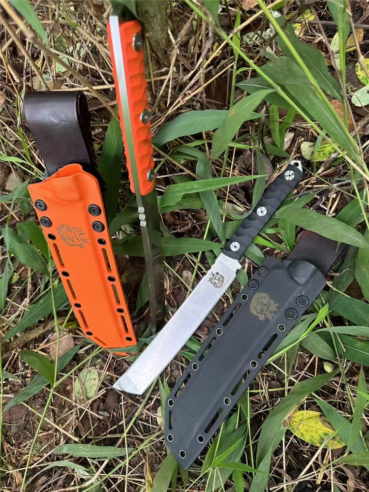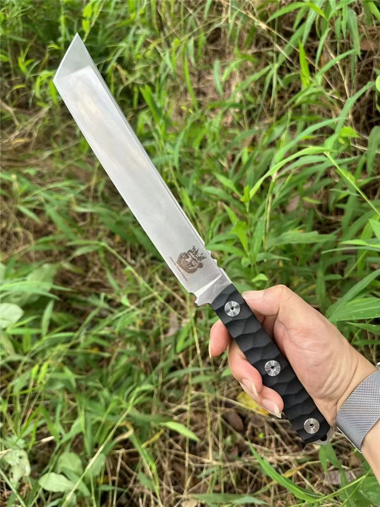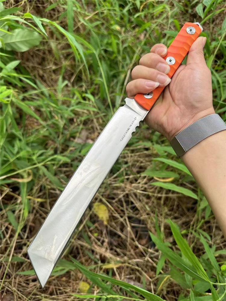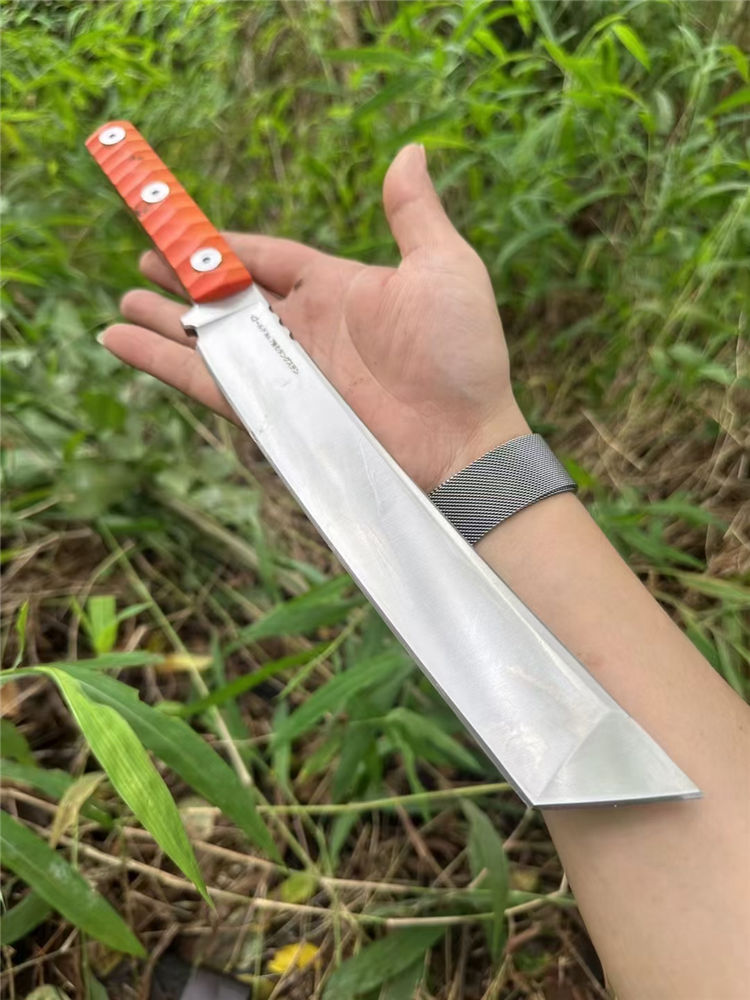 暴力猩猩太空七号直刀 全长:37cm 手柄:14.5cm 刃长:22cm 厚度:0.65cm 宽度:3.5cm(最宽处) 刃材:进口A8钢 柄材:G10复合型纤维 硬度:60-61 HRC(实测硬度) 净重:468克 含鞘:610克 配套:头层牛皮挂件+战术K鞘