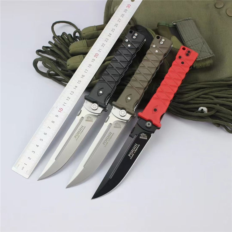 俄罗斯HOKC武士折刀 总长:25.7cm 刃长:11.7cm 刃宽:2.7cm 刃厚:3.4mm 刃材:440C 柄材:G10 柄长:13.9cm 柄宽:3.5cm 柄厚:1.7mm 重量:181G
