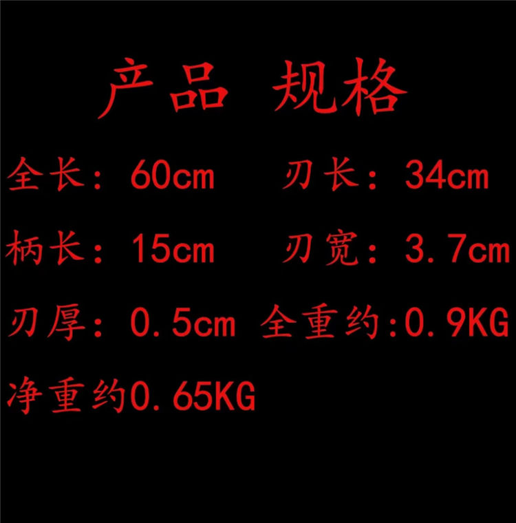 工艺:刀身千锤百炼、经打胚、热锻、铲、锉、磨、热处理(淬火)回火、初修、精修、等龙泉古法数十道手工制作而成
