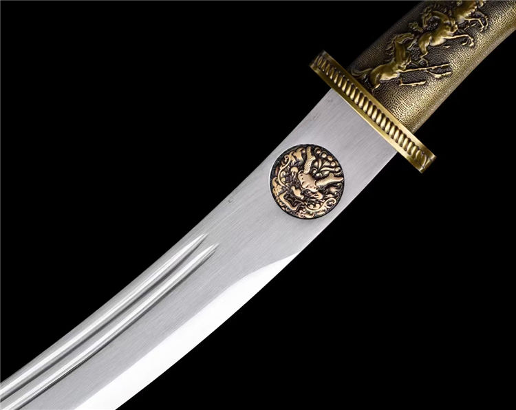 刃材:极限锰钢手工锻打、双血槽设计、刃身采用纯手工镶嵌纯铜雕浮龙工艺⚠在高性能锰钢上镶嵌 难度系数极高 龙泉独家工艺、纯手工精细研磨工艺