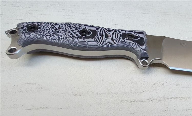 柄材:灰黑G10+螺丝钉,一体全柄,CNC成型防滑纹,手感更舒适,性能更强悍