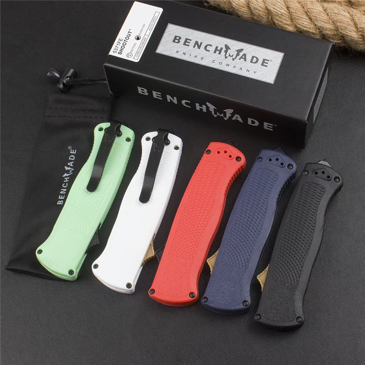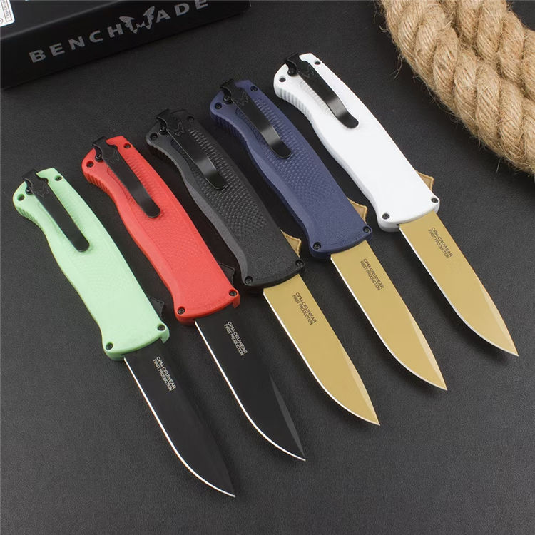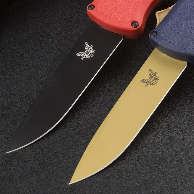 蝴蝶5371直出跳刀 全长:214mm 刃长:90mm 柄长:124mm 刃宽:2.1cm 刃厚:2.5mm 刃材:CPM-CruWear 耐磨钢 刀刃:数控水磨 表面:真空镀钛 柄材: CF-Elite碳纤维尼龙 硬度:59-60HRC 尾椎:铝合金6061T6+撞击器 净重:96g 重量:162g(含包装) 附件:原装黑彩盒,说明书,绒布袋