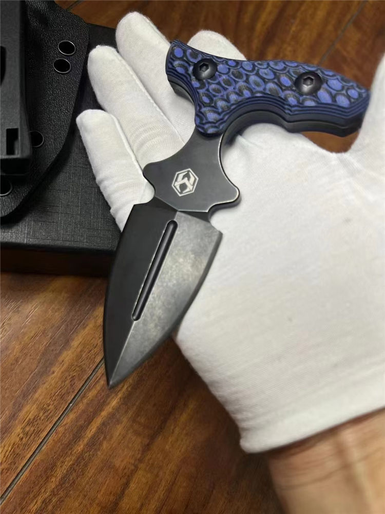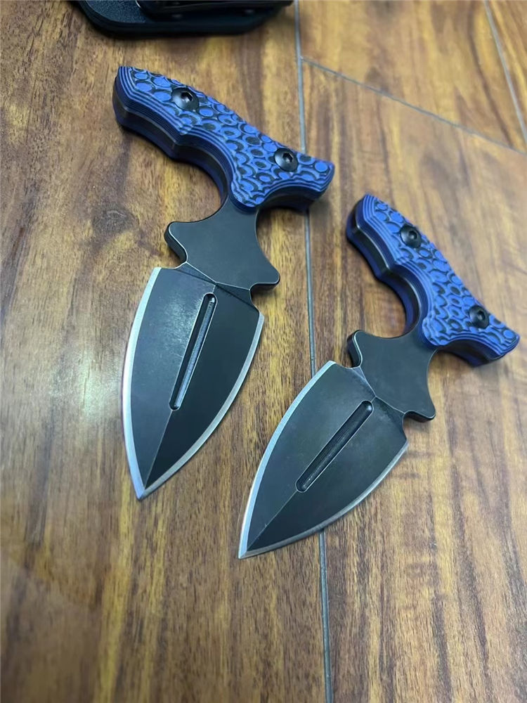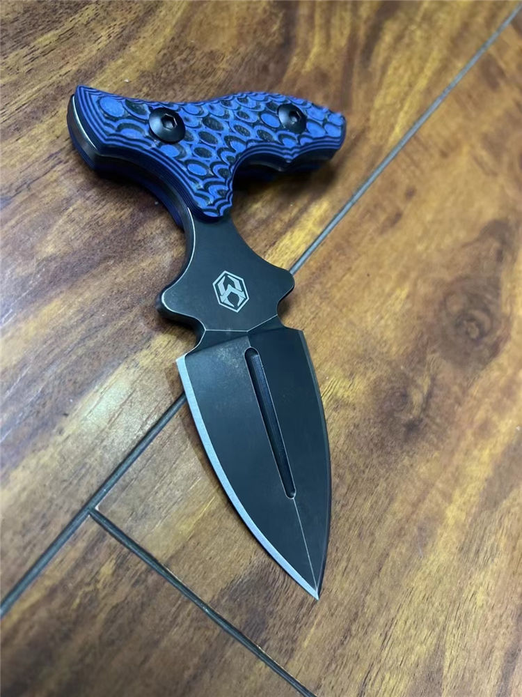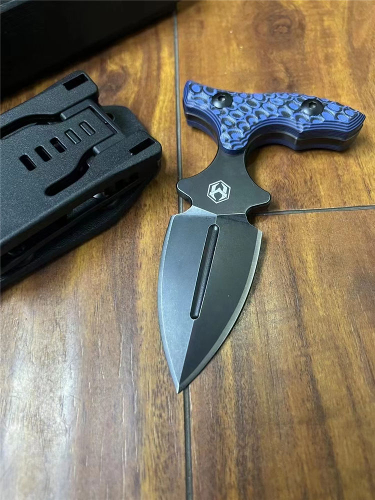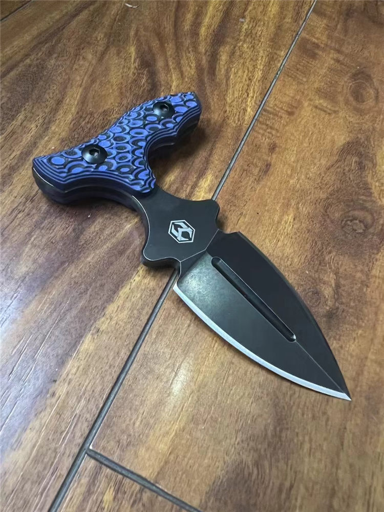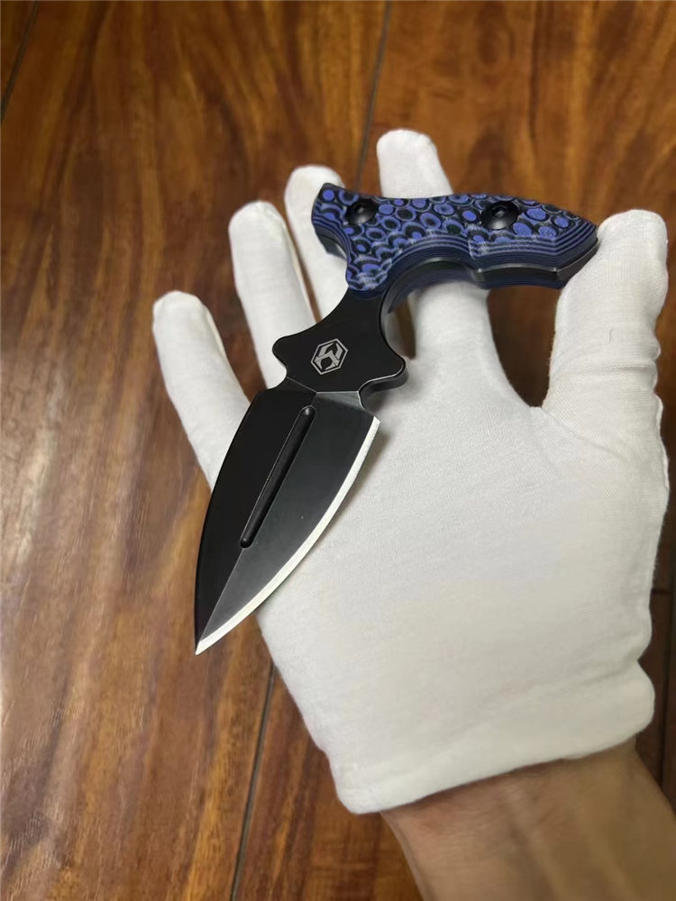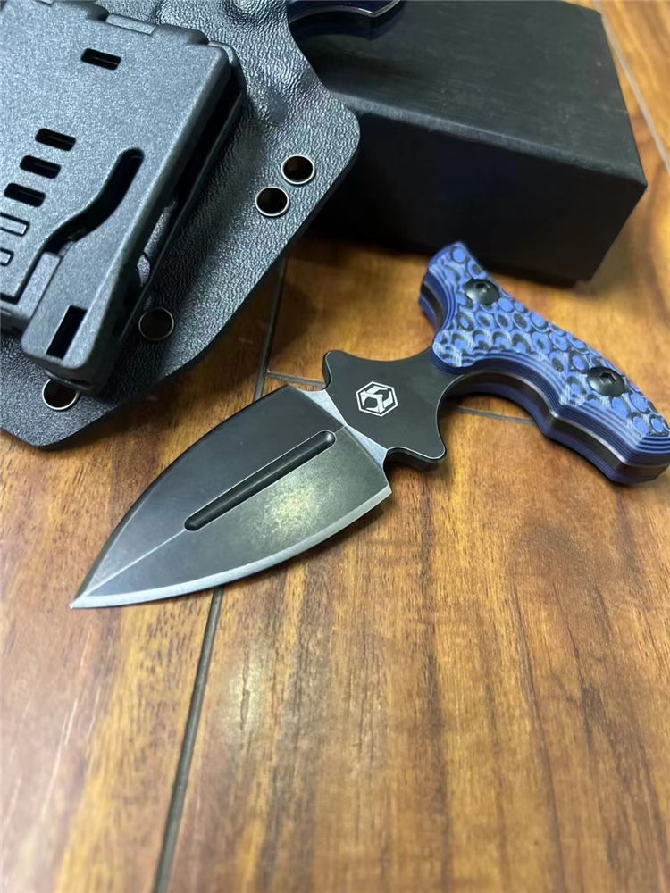 异教徒轻击手刺 全长:127mm 刃长:63mm 刃材:14C28N钢(山特维克钢) 硬度:59-60HRC 表面:镀钛黑 刃厚:5mm 柄长:79mm 柄材:G10柄复合纤维 重量:单手刺145g 重量:246g含K鞘,含包装365g 刀套:K鞘 包装:黑色内含海绵垫礼盒装