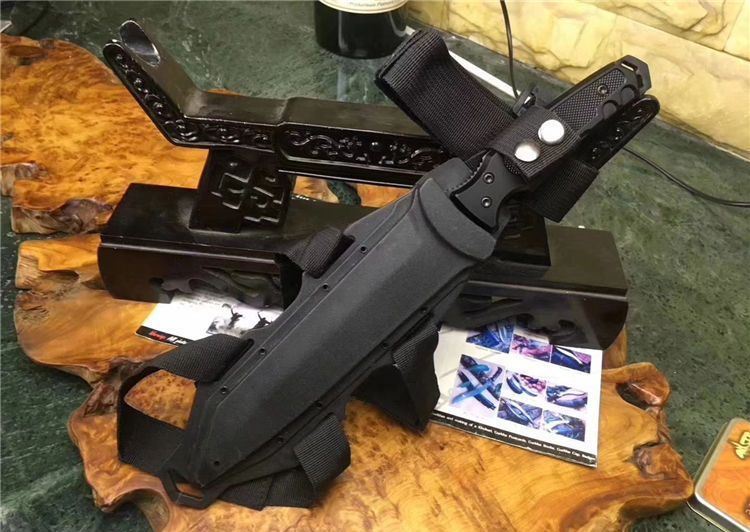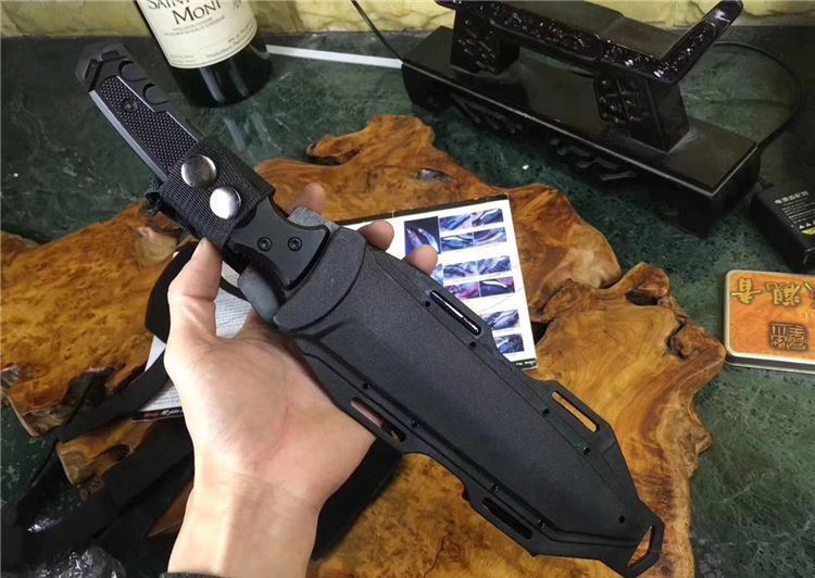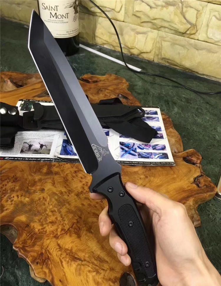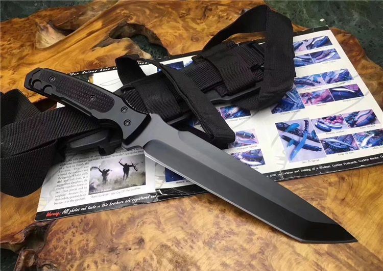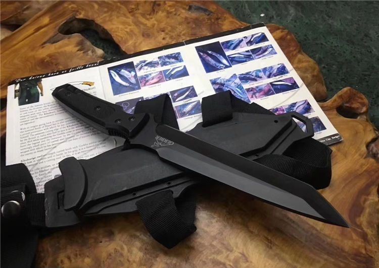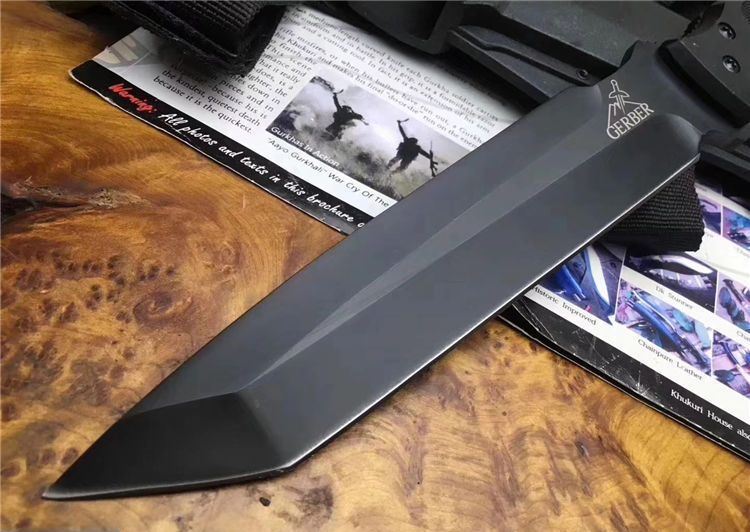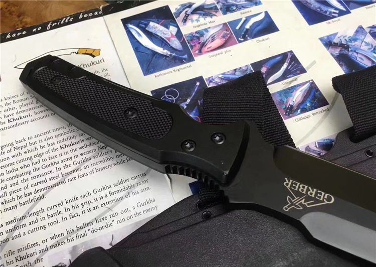 超精仿-戈博1406战术直刀(方头) 全长:34cm 刃长:20cm 刃厚:6.2mm 刃材:5CR15MOV 刀重:490g 总重:710g 表面:发黑,尖头和平头两款,下单注明 硬度:58-60HRC 柄材:加厚铝材 包装:玻纤刀套