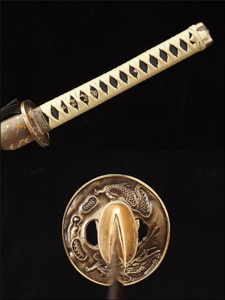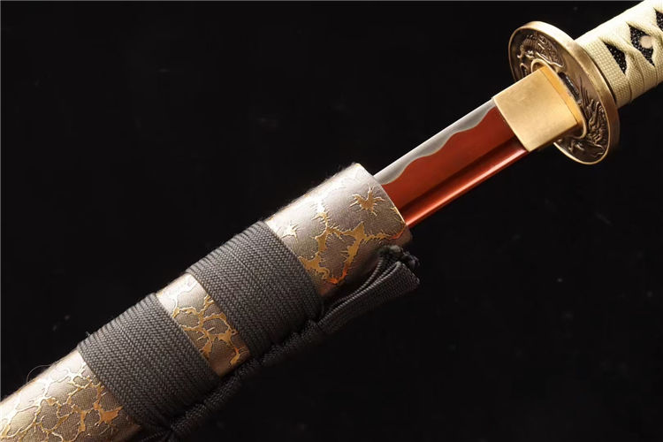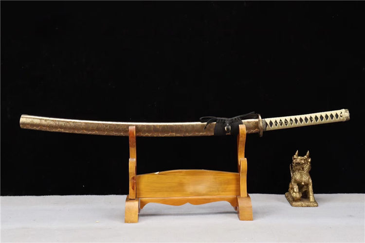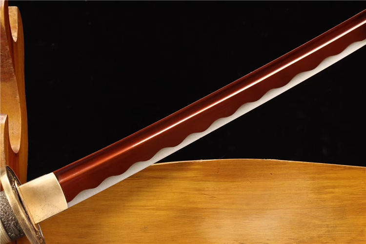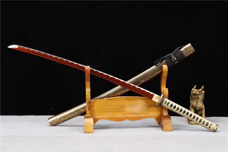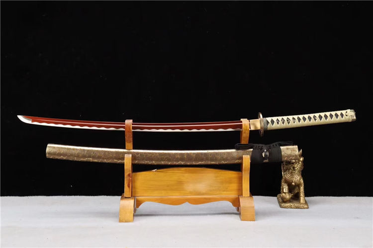 赤龙武士刀 总长:100cm 刃长:72cm 刃宽:3.2cm 刃厚:0.7cm 垫纸:珍珠鱼皮 木材:实木油漆 装具:合金装 材质:1060锰钢