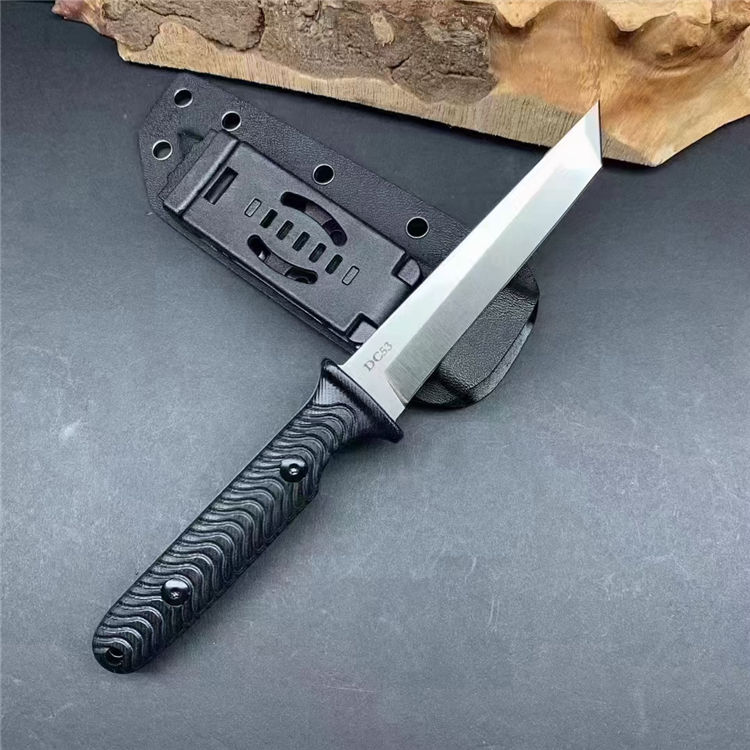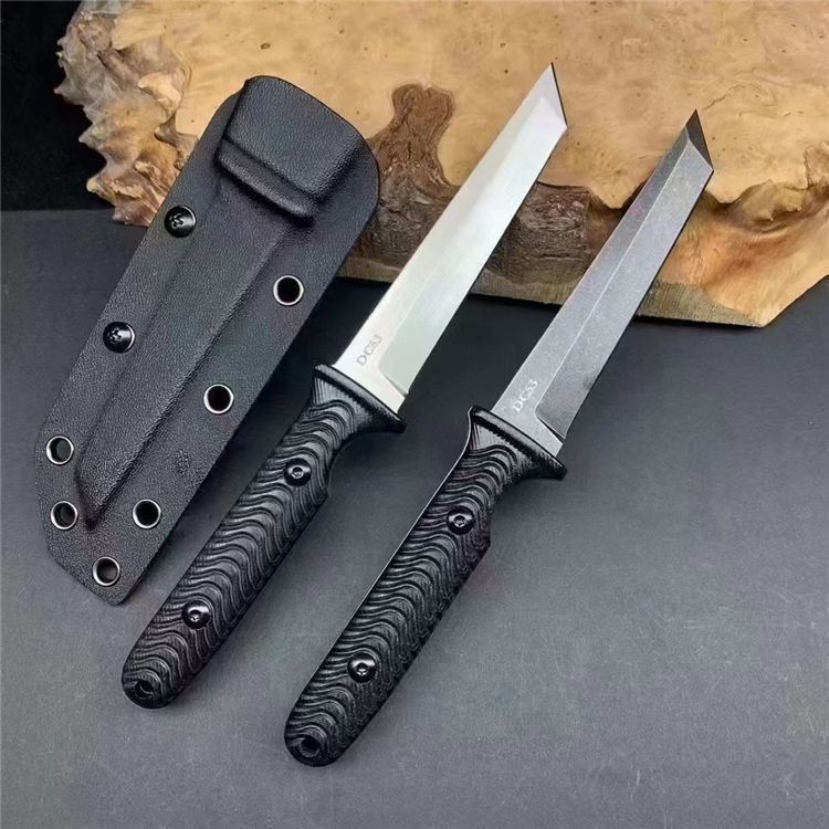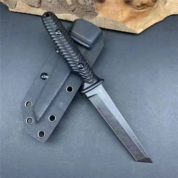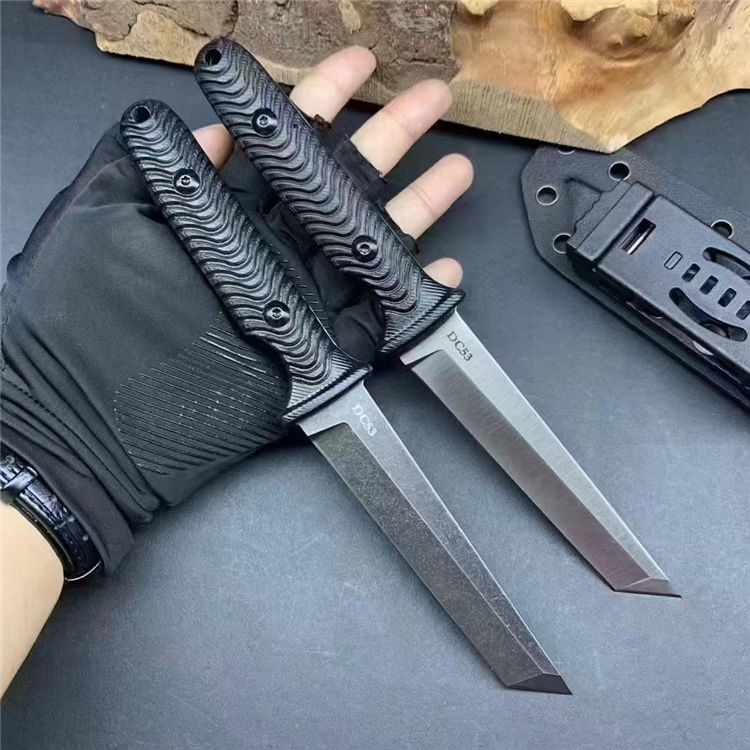 神翼小武士直刀 全长:215mm 刃长:102mm 柄长:107mm 刃宽:22mm最宽处 刃厚:4.8mm 刃材:DC53钢 热处理:真空深冷高温热处理 刀重:165g/230g含鞘 硬度:59-60HRC 表面:手工精细砂光、沧桑,石洗,两种颜色可选 柄材:黑色G10手柄 结构:一体龙骨成型 刀套:战术K鞘 包装:黑盒子