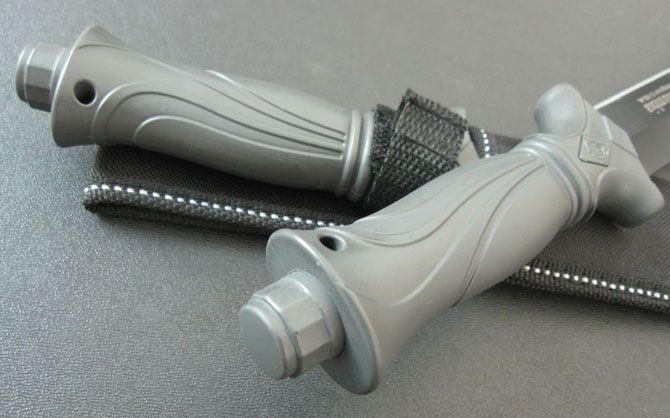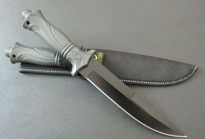 全 长:29.8cm 刃 长:16.0cm 柄 长:13.0cm 刃 厚:3.4mm 刃 材:440 硬 度:56HRC 刀 柄:橡塑手柄,手感非常好 表 面:发黑 重 量:140.0克 备 注:带尼龙套
