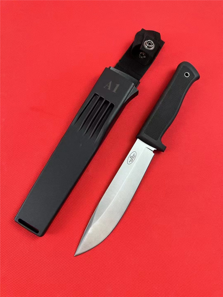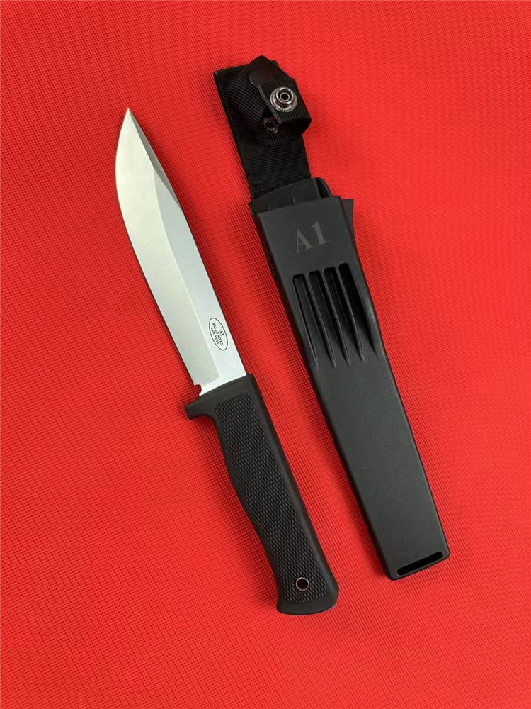 瑞典福克尼A1直刀 全长:282mm 刃长:155mm 刃厚:5.6mm 表面:砂光 刃材:8Cr13 硬度:58HRC 柄长:120mm 重量:360g 柄材:注塑 刀鞘:ABS套 包装:纸盒