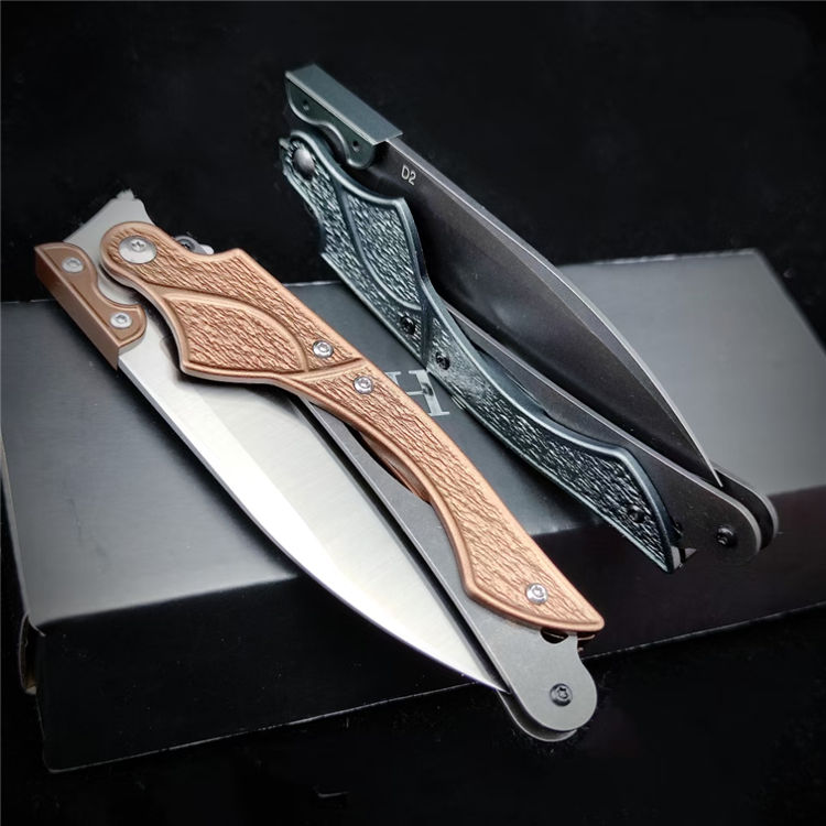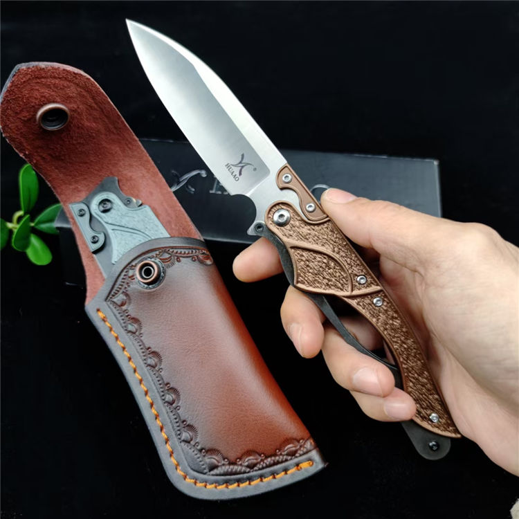 机械鸟折刀 总长:22.5cm 刃长:9.1cm 刃宽:2.6cm 刃厚:2.6mm 材质:D2 柄材:420钢+T6铝 柄长:13.4cm 柄厚:12.4mm 刀鞘:皮鞘 重量:92G