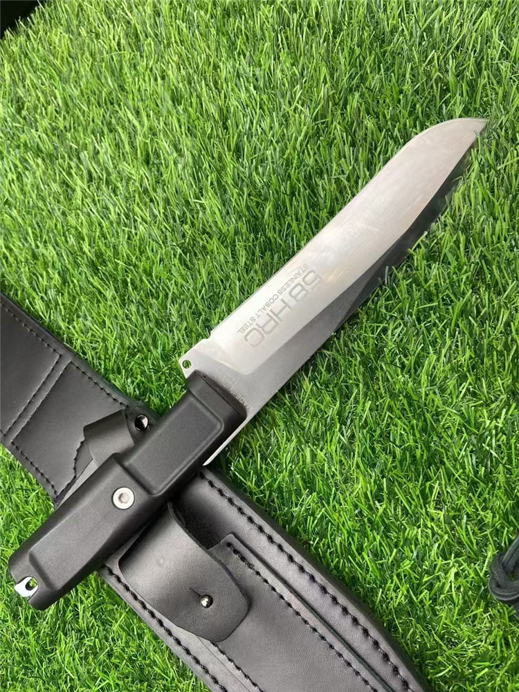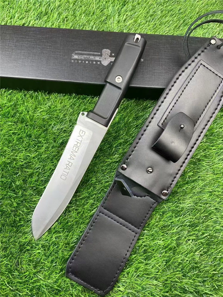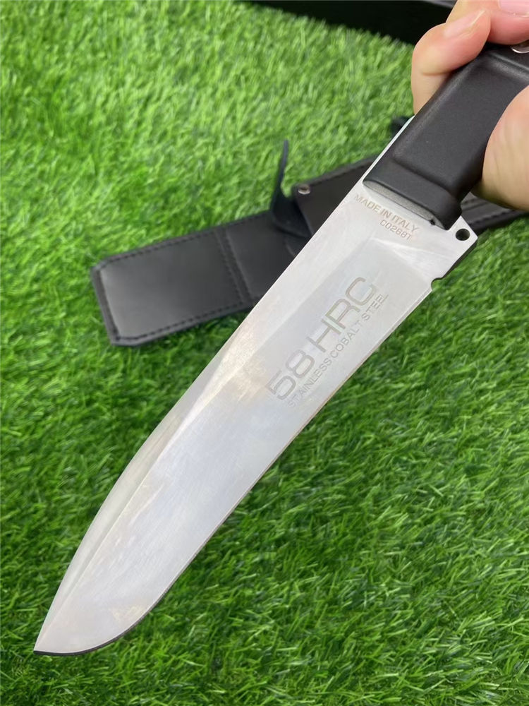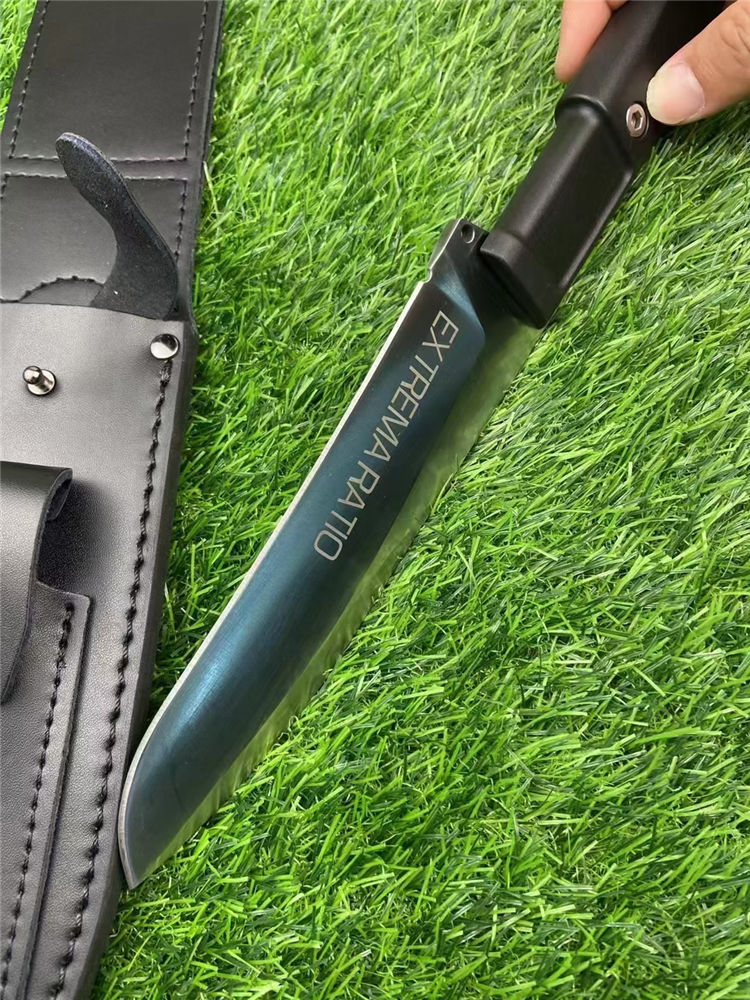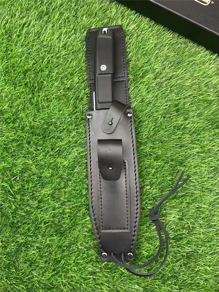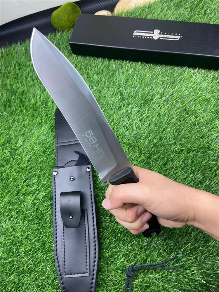 极端武力黑版杜宾犬直刀 全长:31.5cm 刃长:17cm 刃厚:0.6cm 刃宽:4cm 材质:A8 硬度:60HRC 柄材:Forprene 争重:350克 刀套:黑色皮套