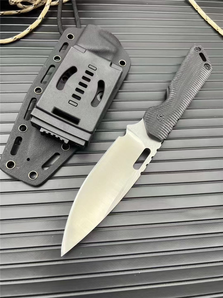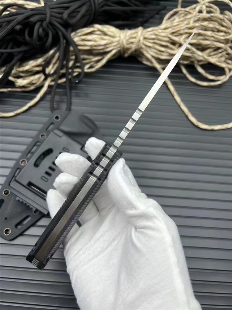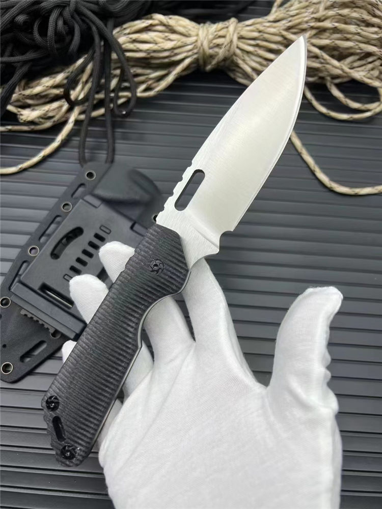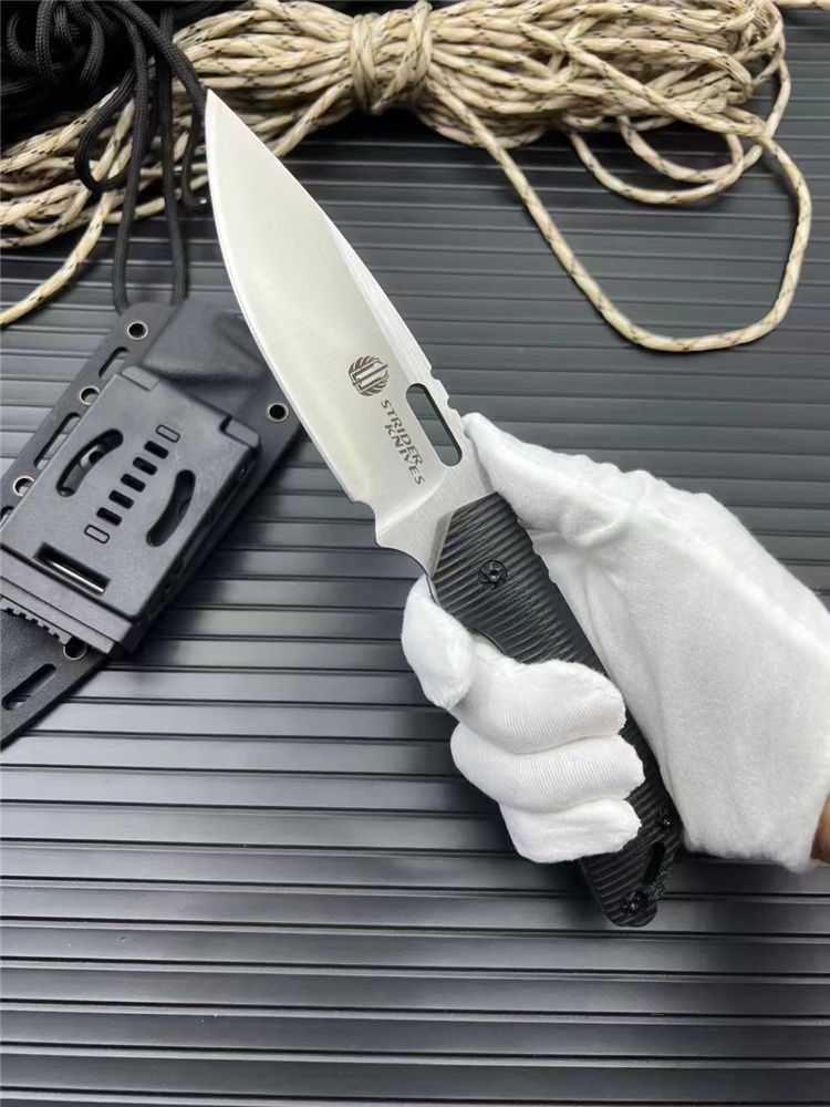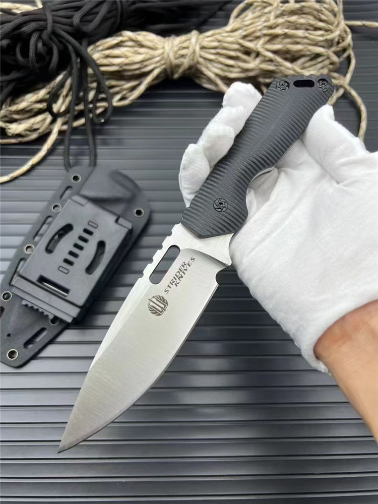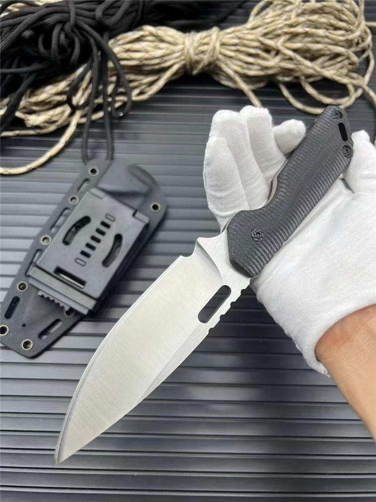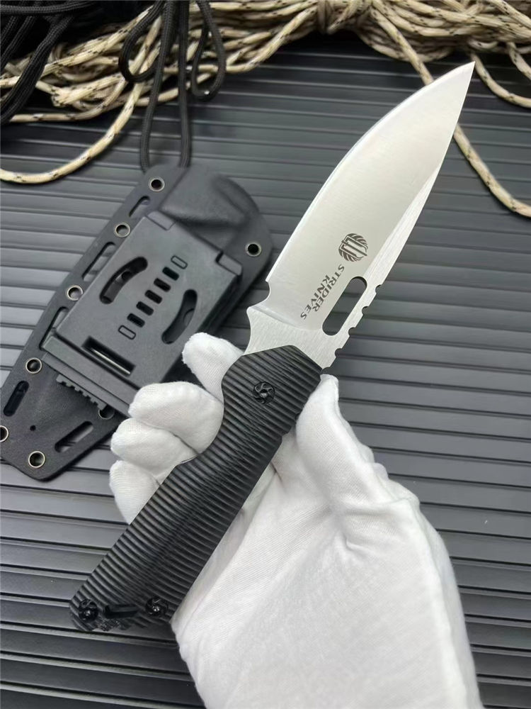 挺进者MK1C直刀 全长:23.5cm 刃长:10.5cm 刃厚:5mm 刃宽:3.4cm 刃材:cr12mov 硬度:58HRC 柄材:黑G10 附件:Kydex鞘 重量:240克(手感做工十分好) 颜色:拉丝