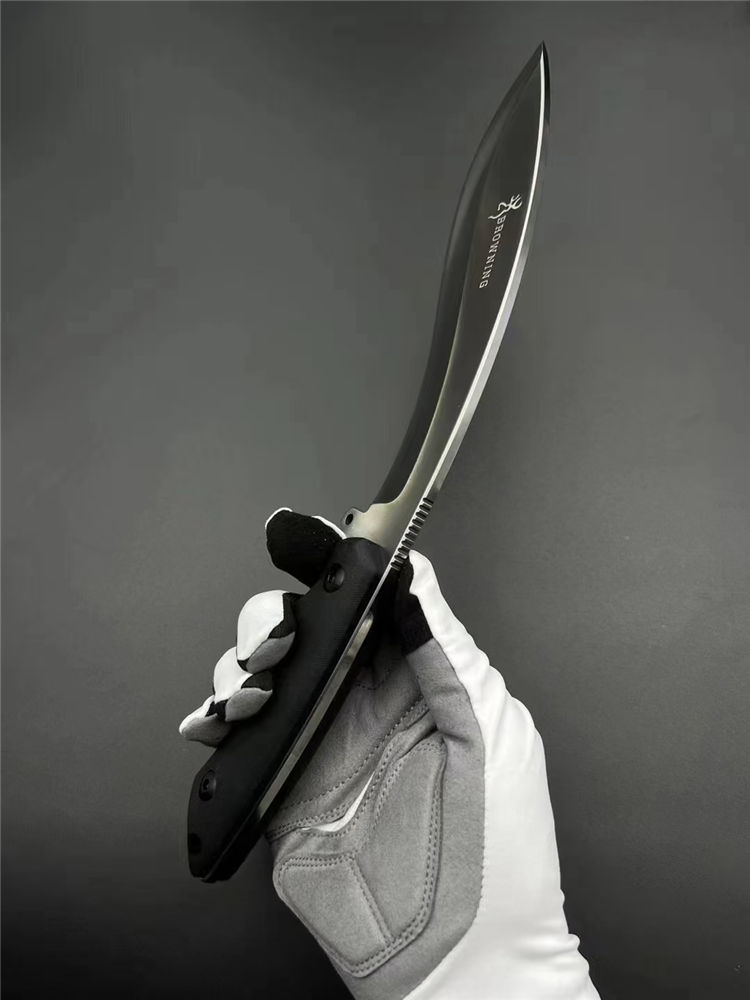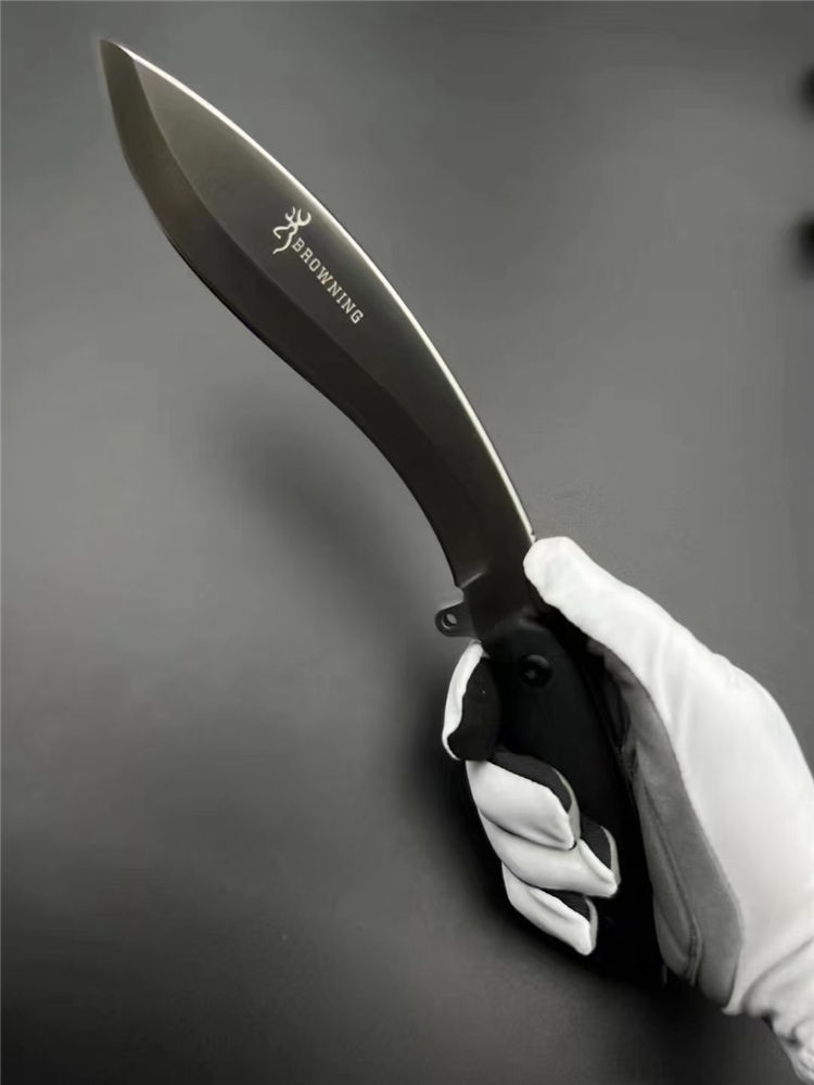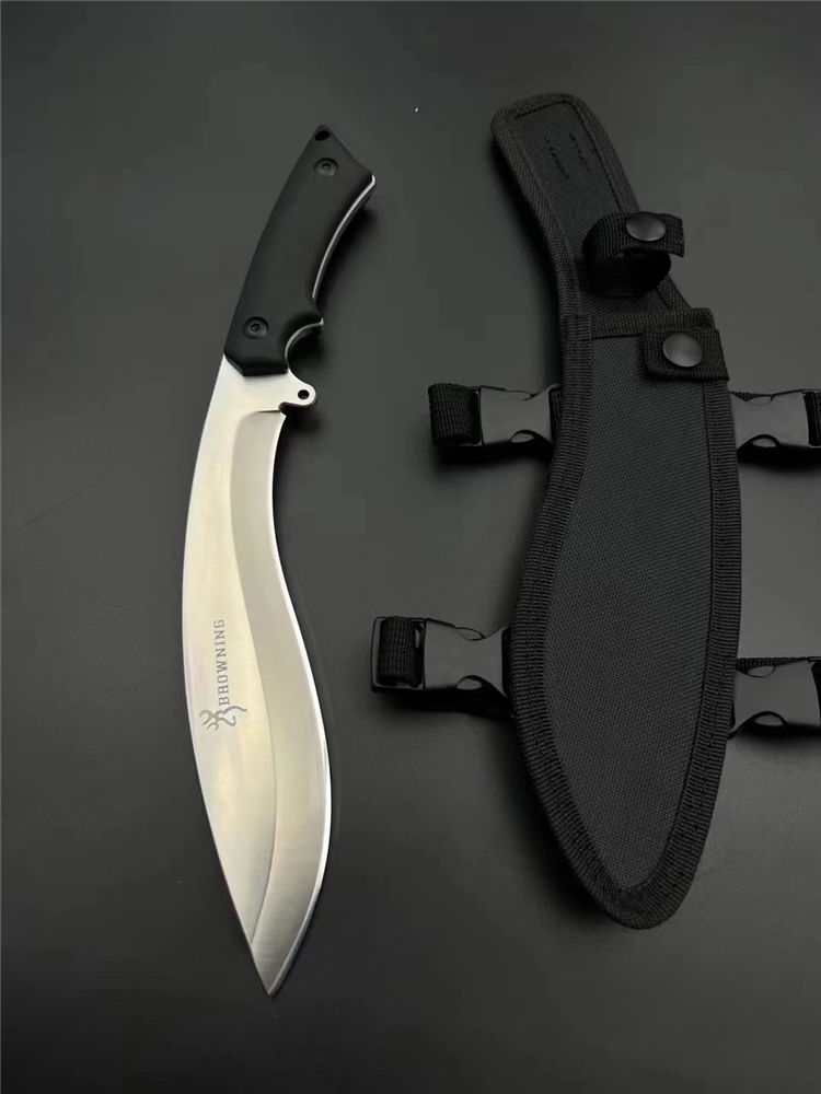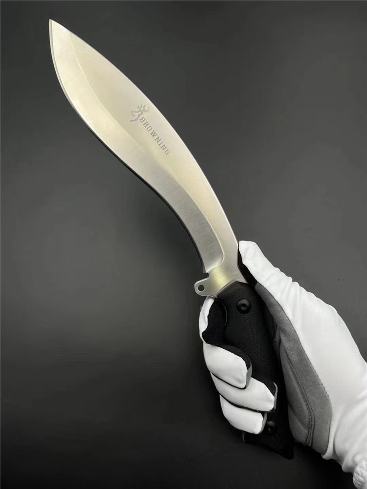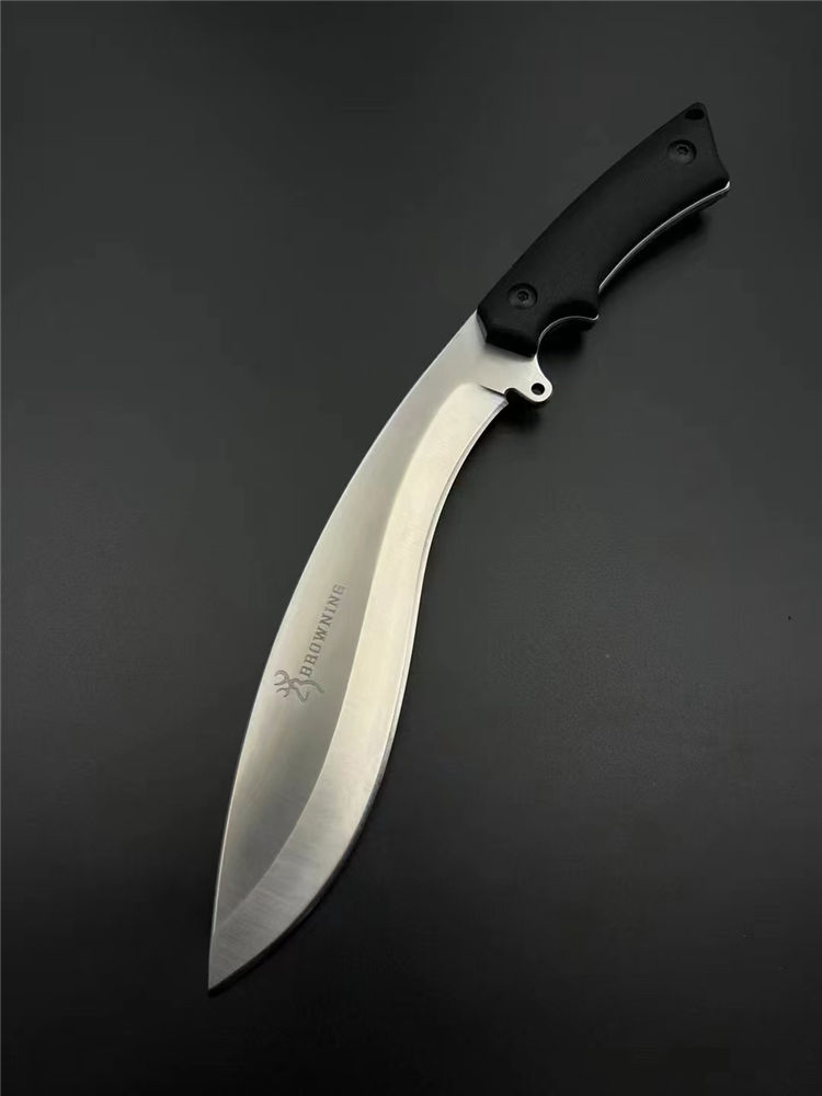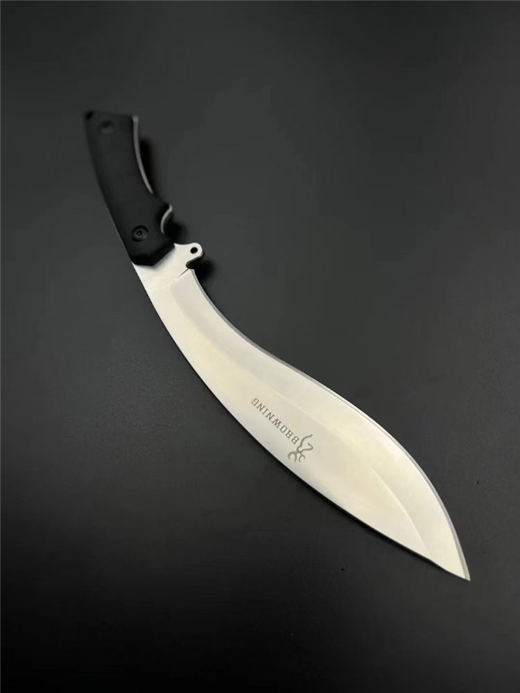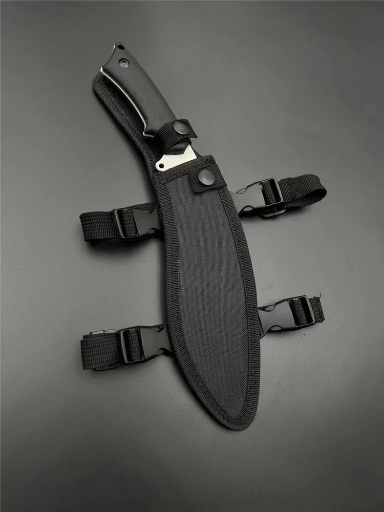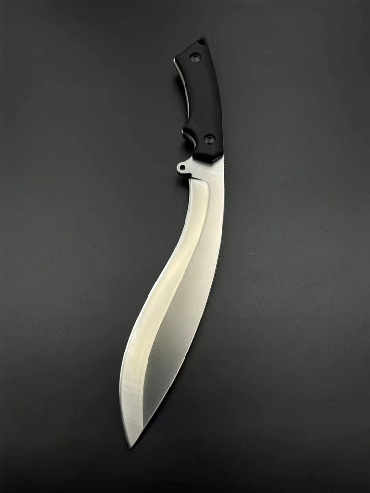 圣龙尼泊尔狗腿弯刀 全长:31cm 刃长:18cm 刃材:DC53钢 硬度:59-60hrc 刃厚:5mm 刃宽:4cm(最宽处) 柄长:12cm 柄材:G10复合纤维 刀鞘:高质量尼龙套 可绑腿 刀重:390g 重量:850g(含包装) 锁定:弯刀 表面:砂光缎面