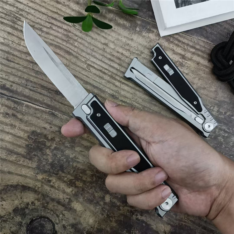 大号萝卜重力刀 总长:23.3cm 刃长:9.8cm 刃宽:1.9cm 刃厚:2.9mm 刃材:D2 柄材:铝 柄长:13.3cm 柄宽:2.9cm 柄厚:13.2mm 重量:108G