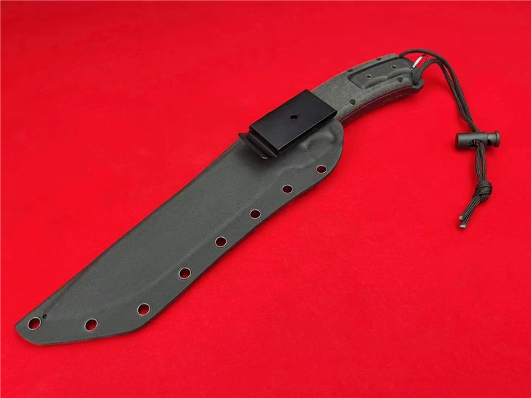 复刻版TOPS钢鹰子母款直刀 总长:34.3cm 刃长:18cm 刃厚:0.6cm 钢材:1095高碳钢 硬度:60HRC 重量:裸刀重520克 刀鞘:K鞘 包装:礼盒