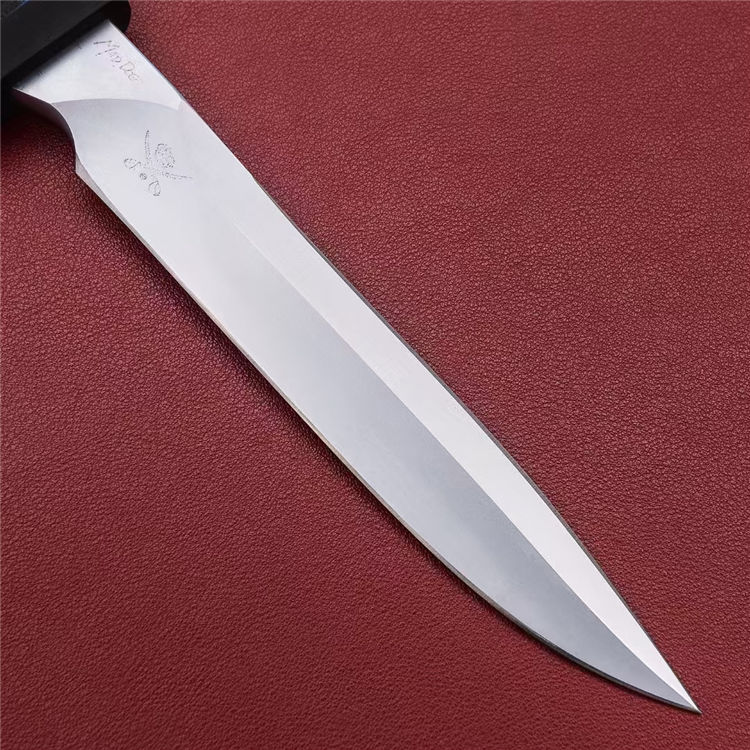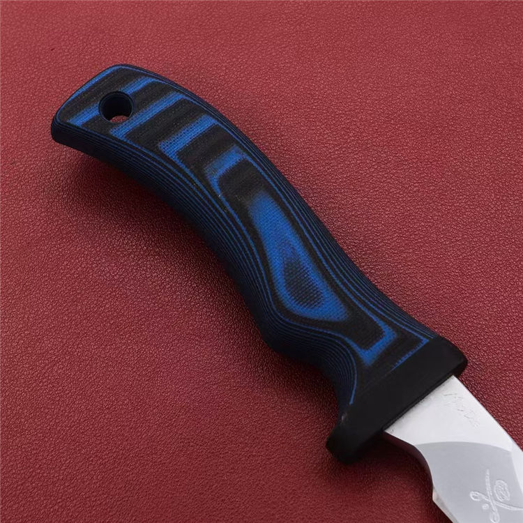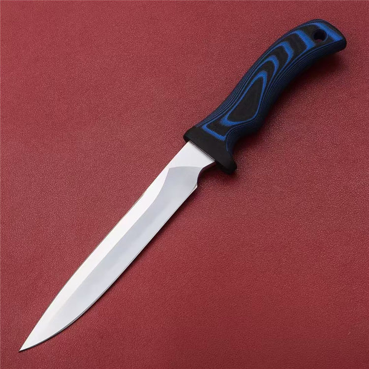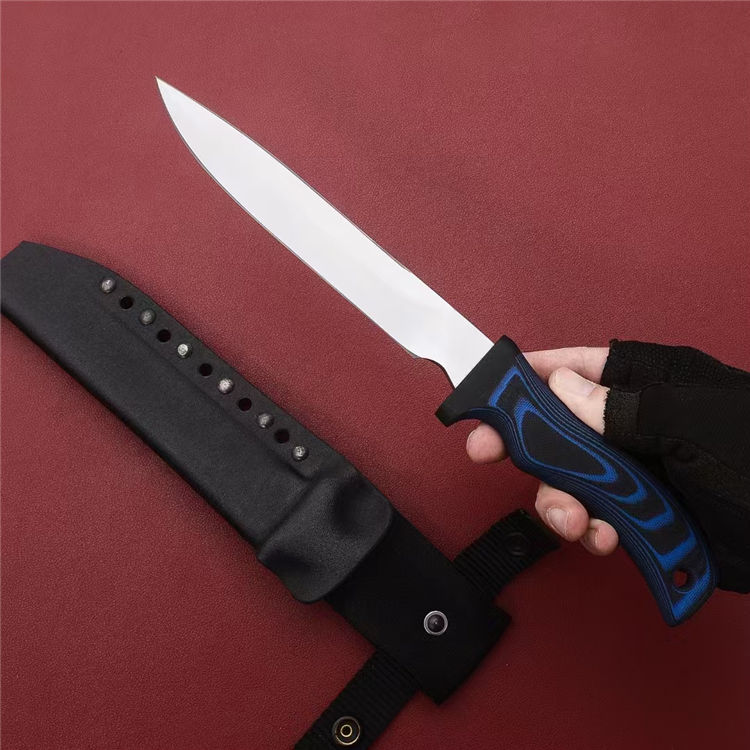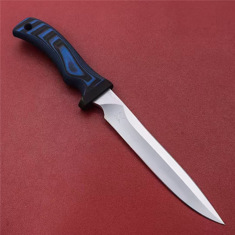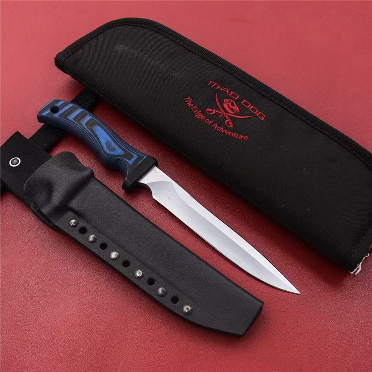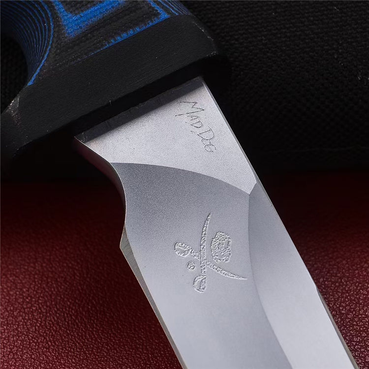 疯狗伯劳鸟手签版直刀 全长:30.4cm 刃长:17.7cm 刃厚:0.6cm 手柄:双色G10 刀鞘:K鞘 钢材:AUS-10 硬度:61HRC
