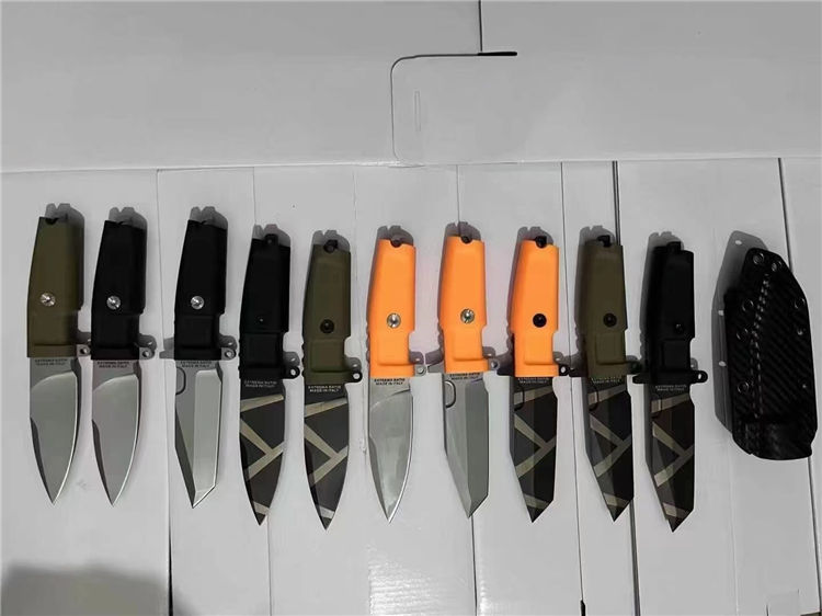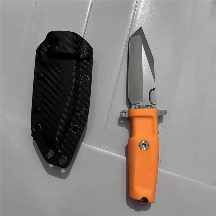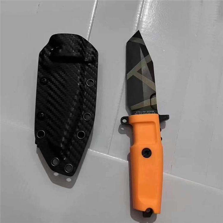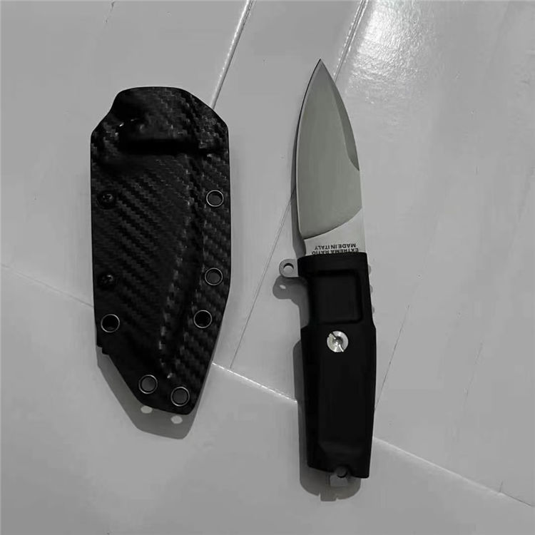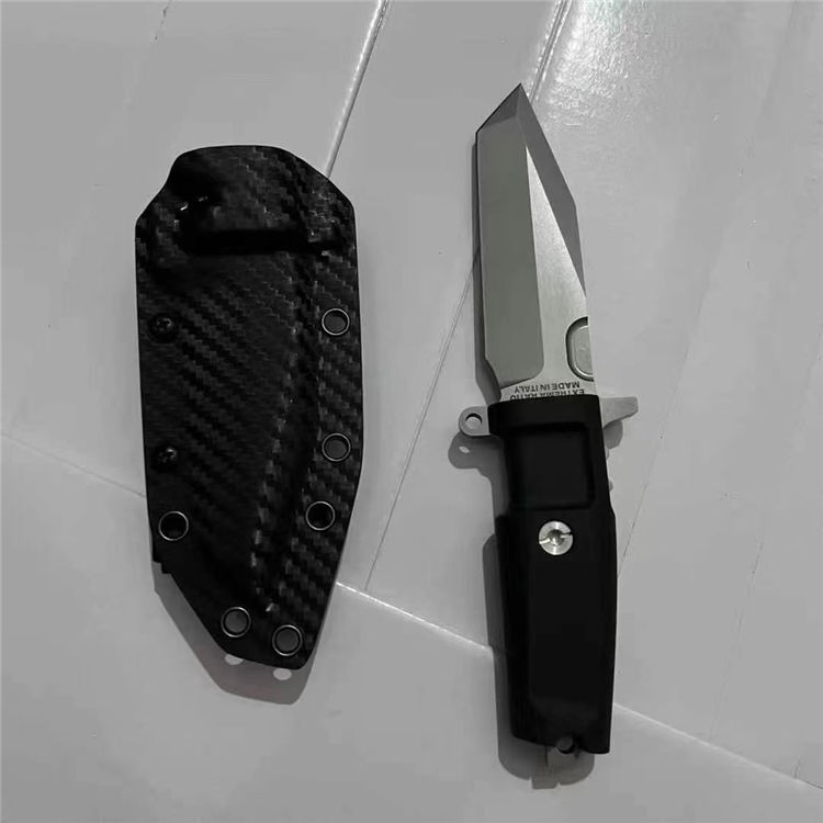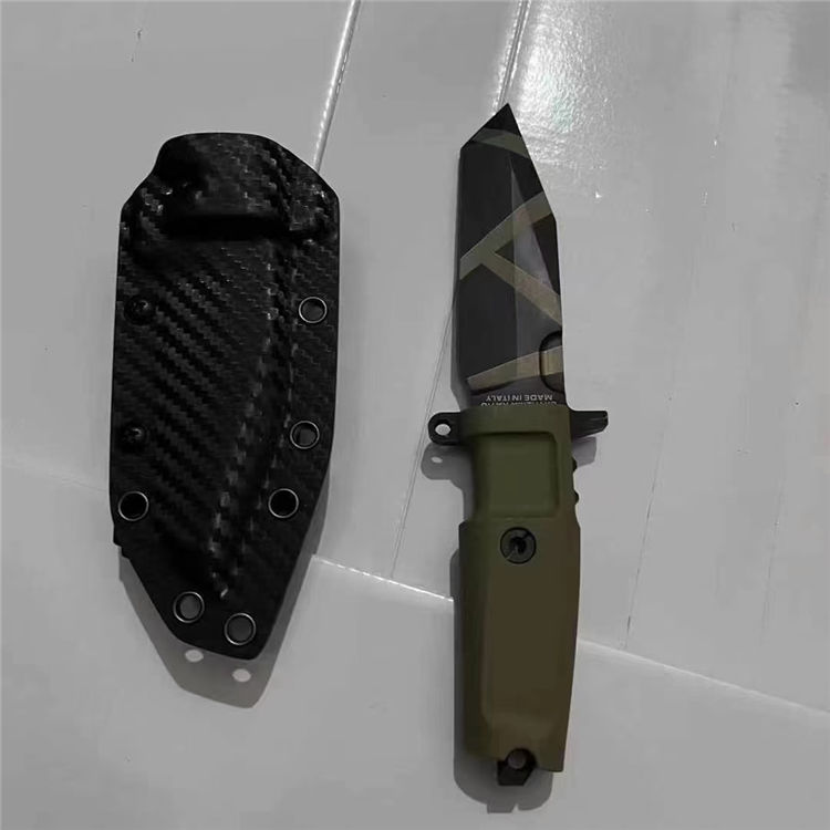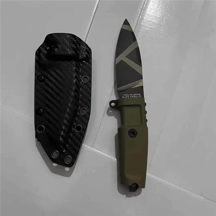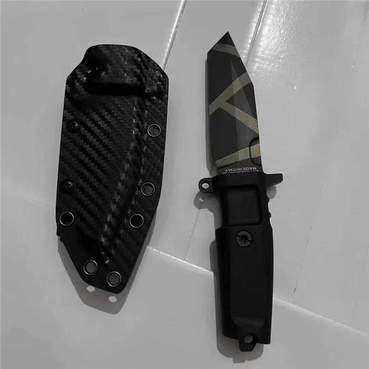 极端武力紧凑型支点和榴弹直刀 全长:21.5cm 刃长:9.5cm 柄长:11cm 厚度:6mm 表面:迷彩 手柄:克拉通 刀鞘:碳纤维K套