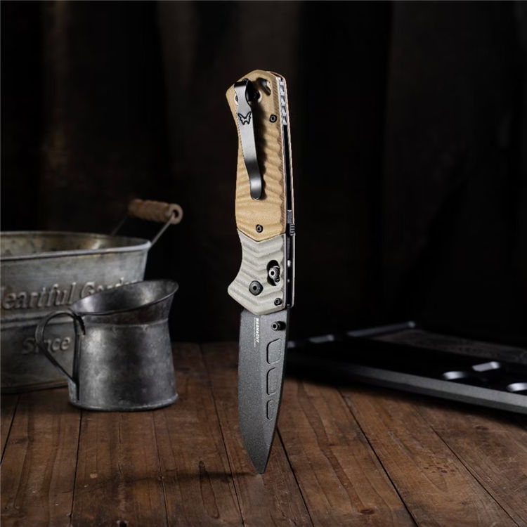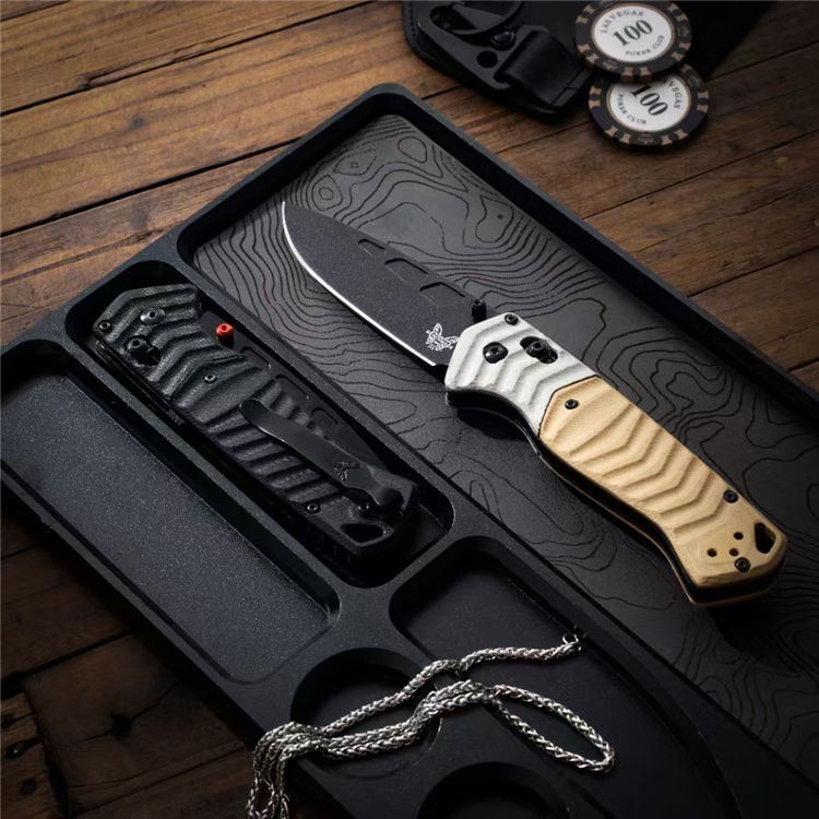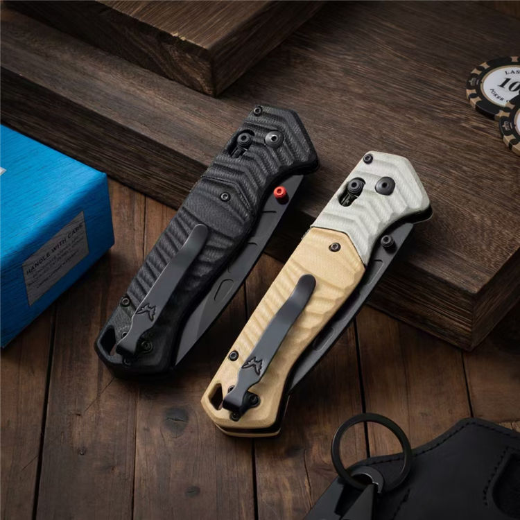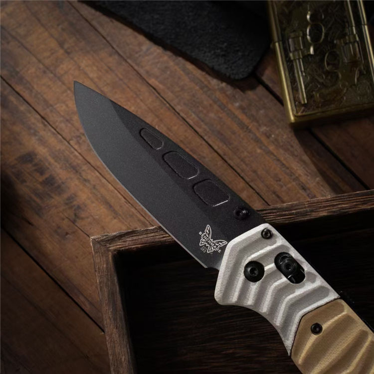 蝴蝶593BK折刀 全长:21cm 刃长:8.6cm 柄长:12.5cm 刃宽:2.9cm 刃厚:0.28cm 净量:120g 重量:200g 刃材:D2 硬度:60-62HRC(真空热处理) 表面:镀钛黑+灰钛涂层 柄材:G10+钢片 备注:蝴蝶专用包装礼盒,蝴蝶专用战术尼龙布袋,刀片数控研磨,刀柄采用高精密CNC三维技术制作