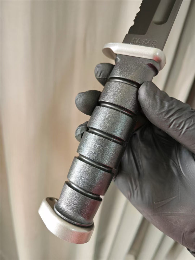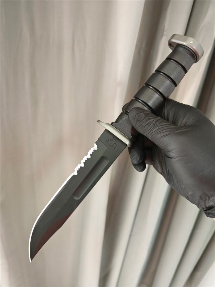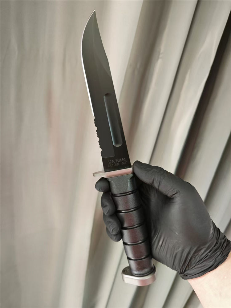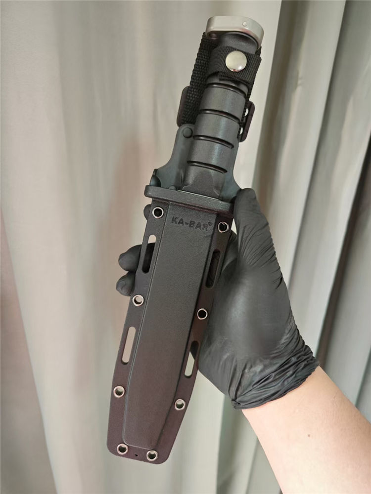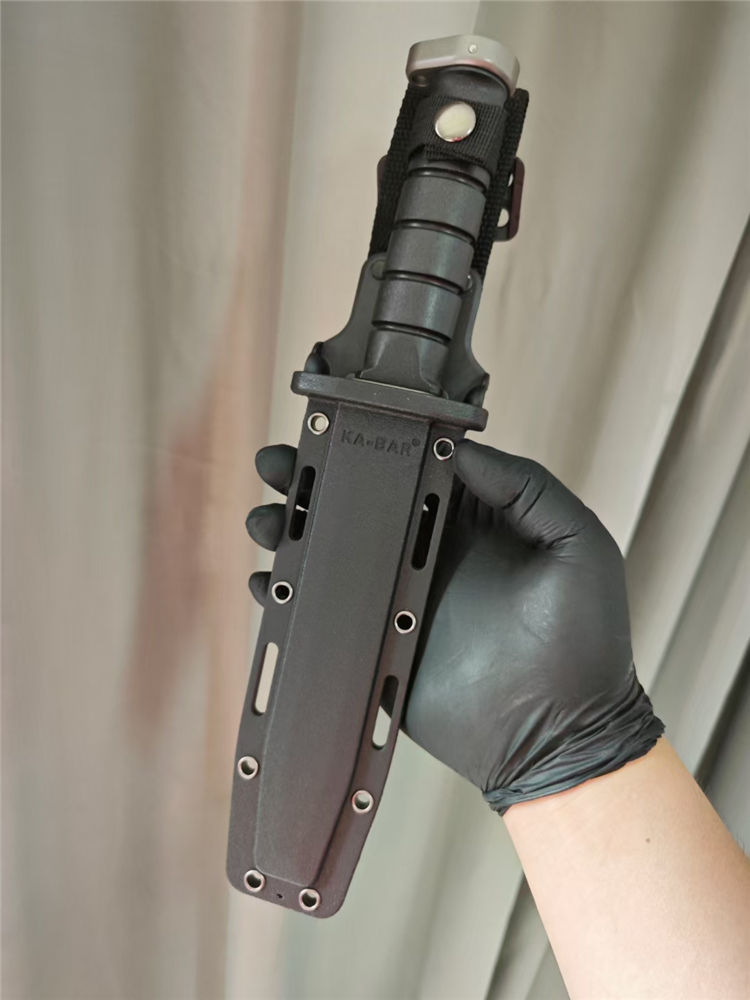复刻版卡巴1282直刀 全长:30.5cm 刃长:17.8cm 刃厚:0.44cm 刃宽:3cm 刀重:340g 刃材:1095Cro Van碳钢 表面:黑色环氧涂层 硬度:60-61HRC 柄材:Zytel 刀鞘:Kydex鞘 包装:高档彩盒