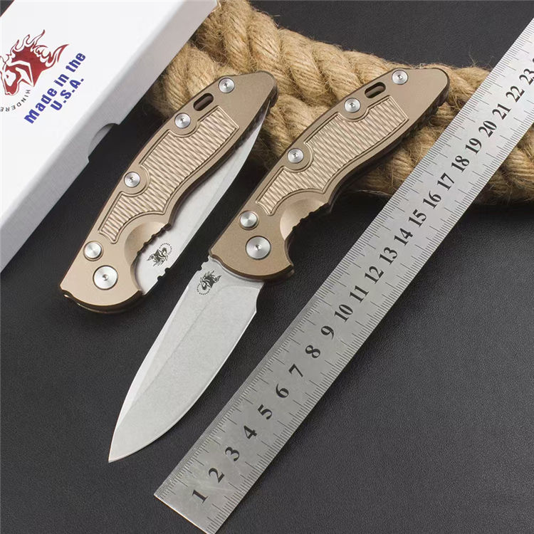 辛德勒XM18侧开跳刀 全长:20.8cm 刃长:8.3cm 闭合:12.2cm 刃厚:0.35cm 刃材:CPM20CV 柄材:T6铝合金 硬度:59HRC 重量:112g 毛重:163g 附件:说明书,彩盒