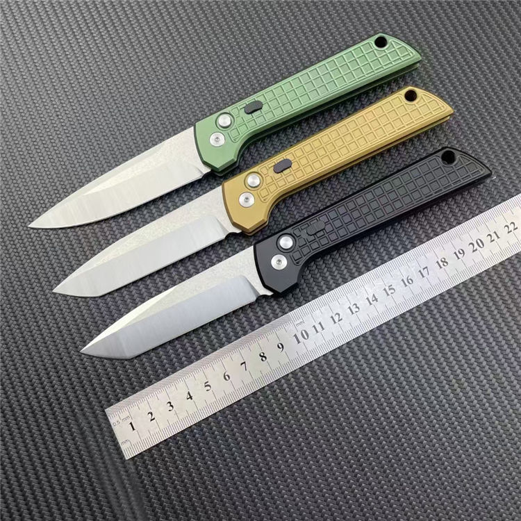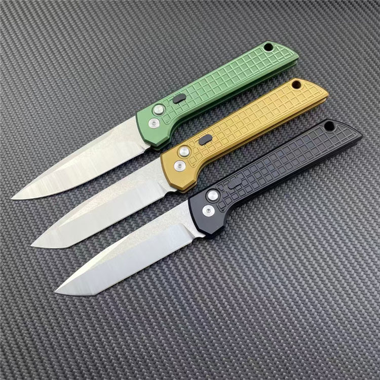 骑士三色侧开跳刀 全长:22cm 刃长:9cm 柄长:13cm 刃宽:2.6cm 刃厚:4mm 刃材:5GR13 柄材:铝合金 刀重:113G 毛量:145G 硬度:58-60HRC 包装:礼盒