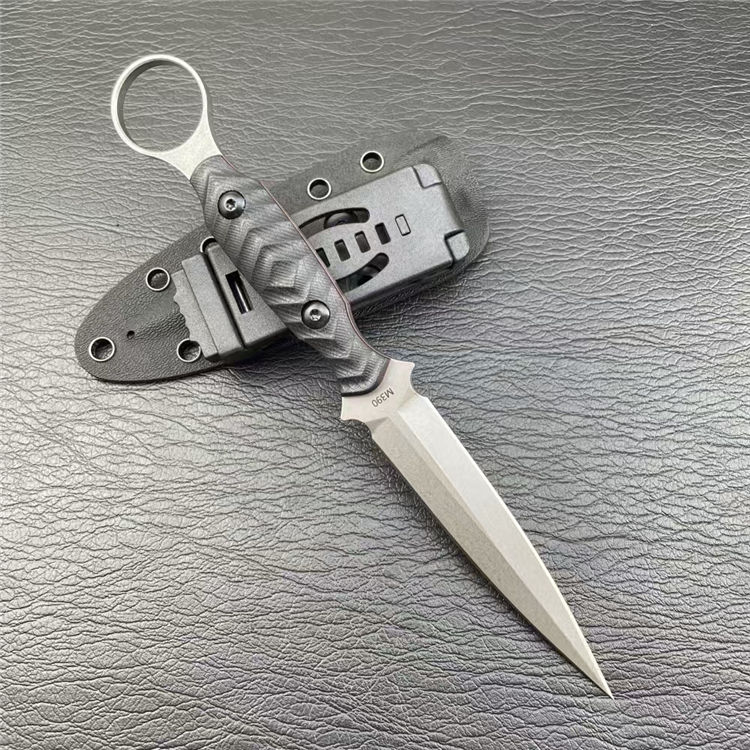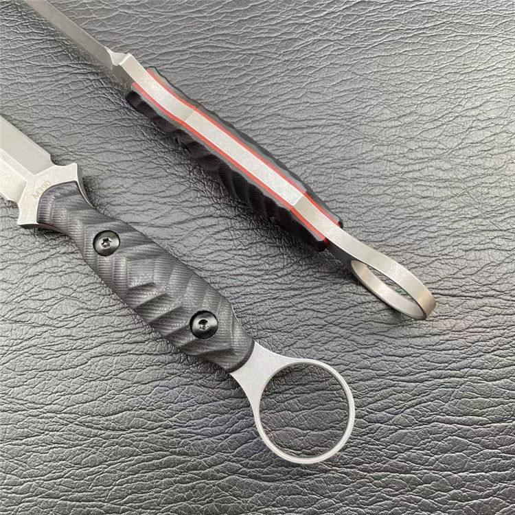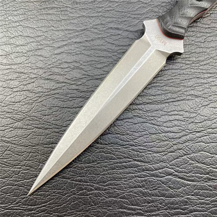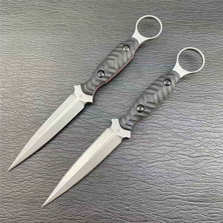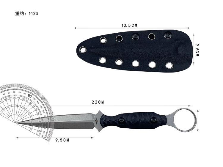 天击手刺 全长:22cm 刃宽:2cm 刃长:9.5cm 柄长:18cm 刃厚:3mm 刃材:8CR14 柄材:塑料 刀重:112G 毛量:263G 硬度:58-60HRC 包装:礼盒